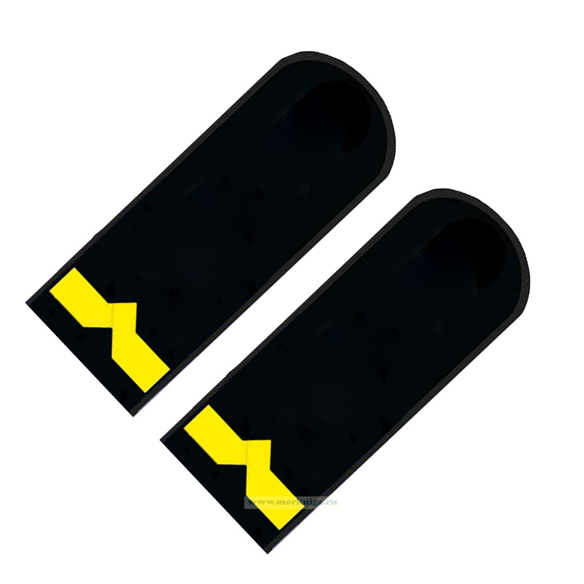 Погоны (речной транспорт), пятая категория (3-й штурман, 3-й помощник механика на судах ниже 750 л.с.), мужские, нашивные, черные, треугольные, 14х5 см (1166 руб.)