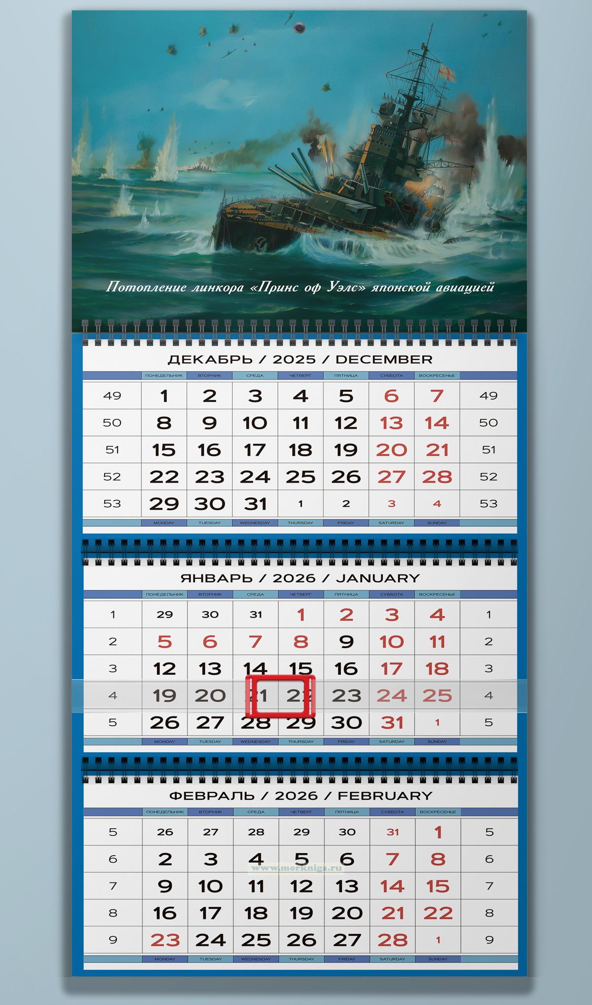 Календарь квартальный "Линейный крейсер "Худ" в бою" на 2026 год (730 руб.)