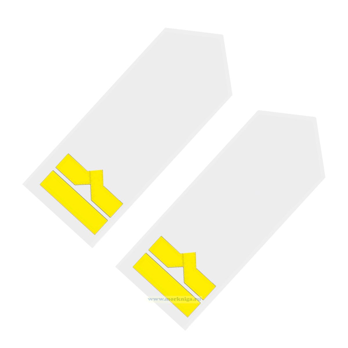 Погоны (речной транспорт), шестая категория (3-й штурман, 3-й помощник механика, начальник радиостанции), мужские, съемные, белые, округлые, 14х5 см (1212 руб.)