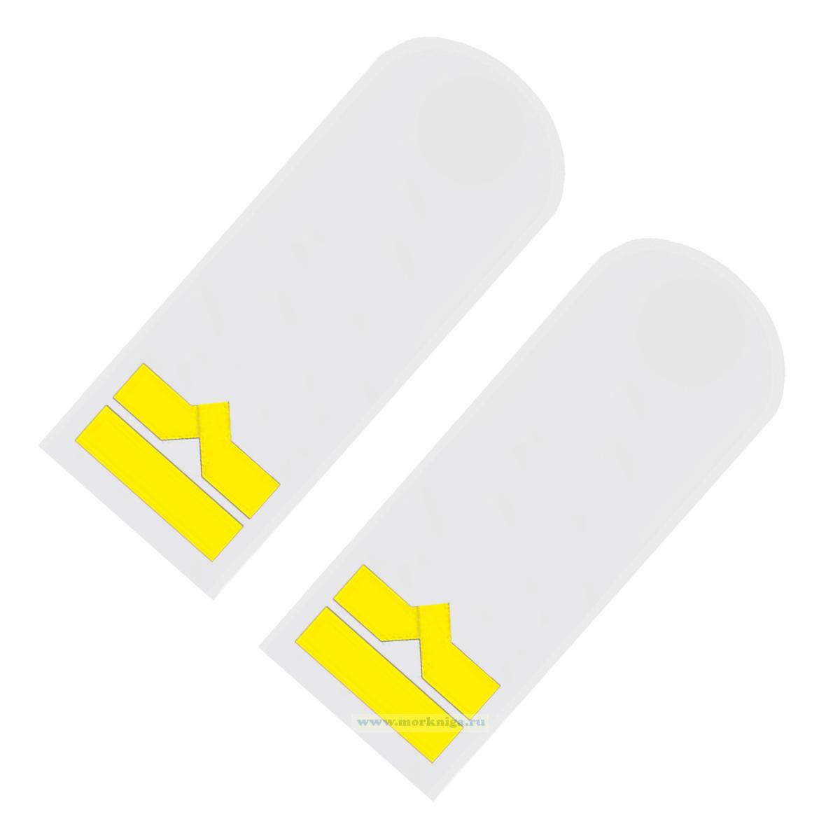 Погоны (речной транспорт), шестая категория (3-й штурман, 3-й помощник механика, начальник радиостанции), мужские, съемные, белые, прямоугольные, 14х5 (1212 руб.)