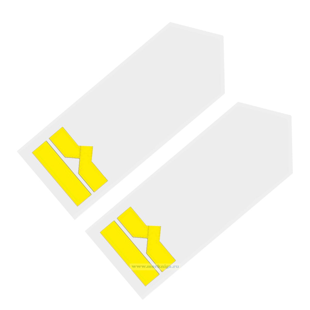 Погоны (речной транспорт), шестая категория (3-й штурман, 3-й помощник механика, начальник радиостанции), мужские, съемные, белые, прямоугольные, 14х5 (1212 руб.)