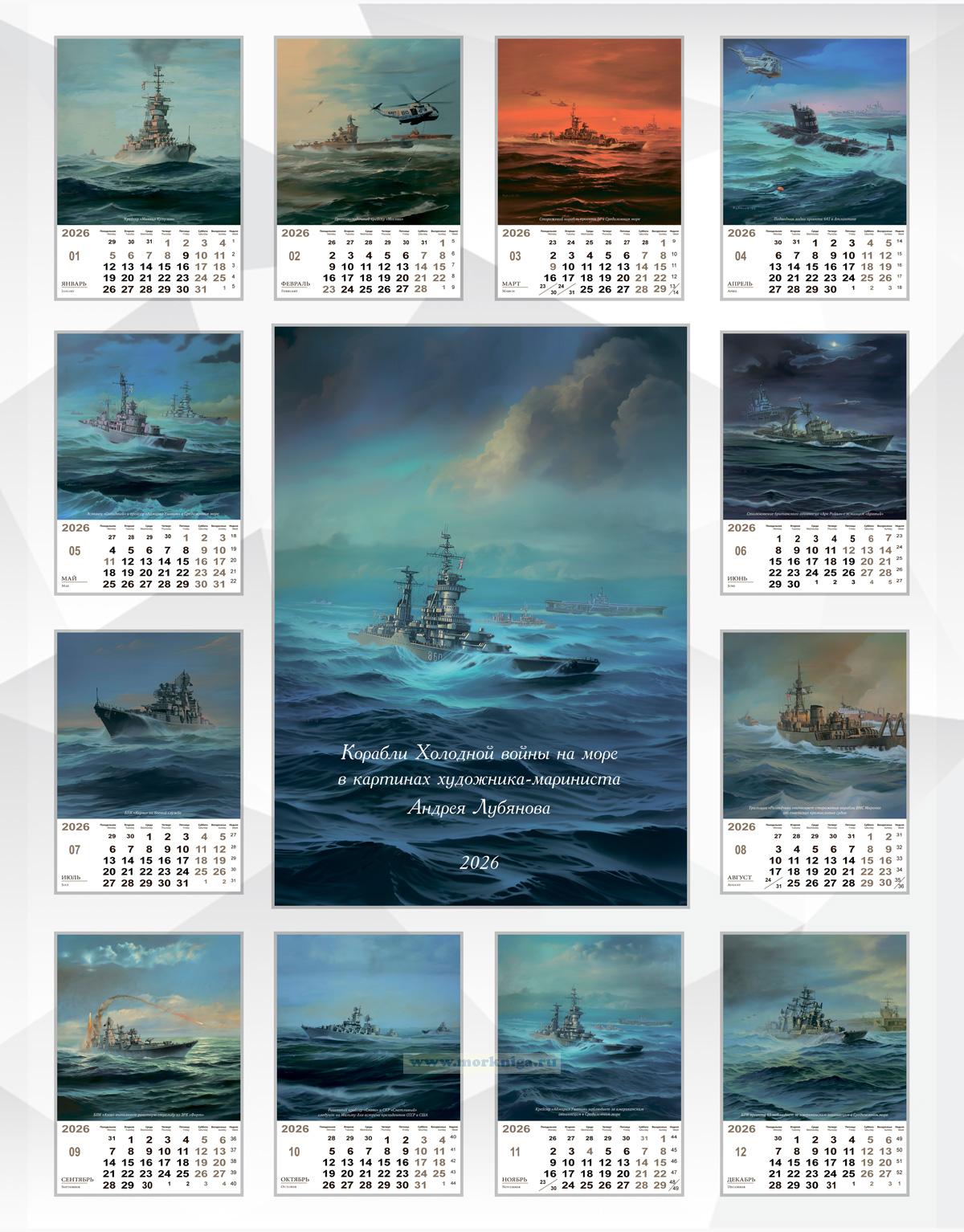 Набор карманных календариков на 2026 год "Корабли холодной войны на море в картинах художника-мариниста Андрея Лубянова", 10х7 см (12 шт) (200 руб.)