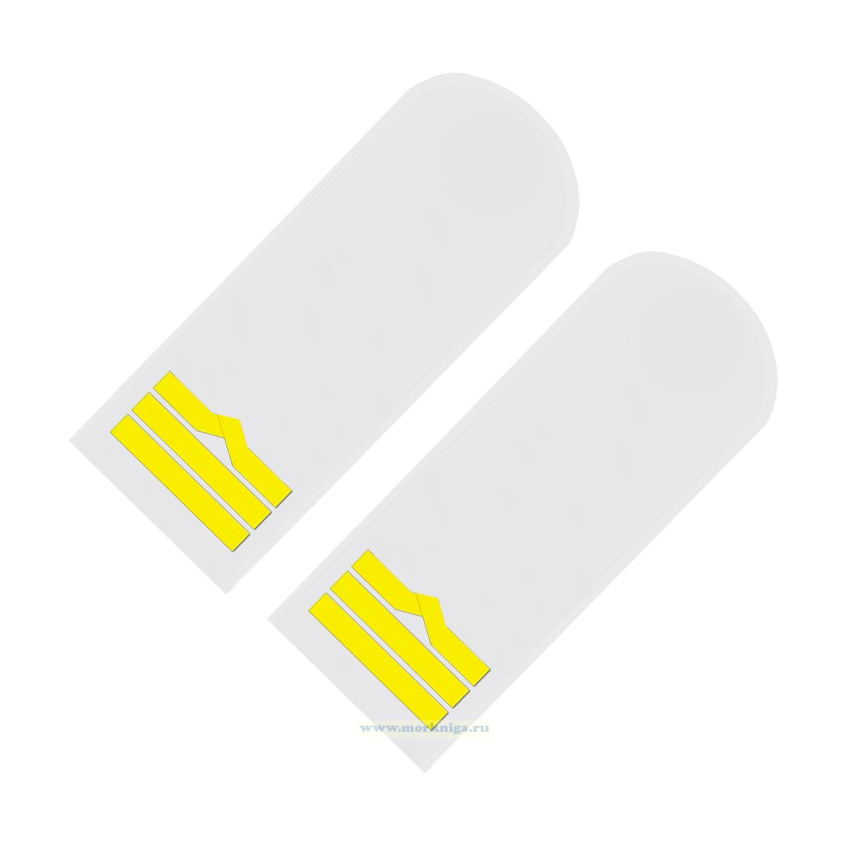 Погоны (речной транспорт), восьмая категория (штурман, 1-й помощник, 1-й механик, электро механик), мужские, съемные, белые, прямоугольные, 14х5 см (1305 руб.)