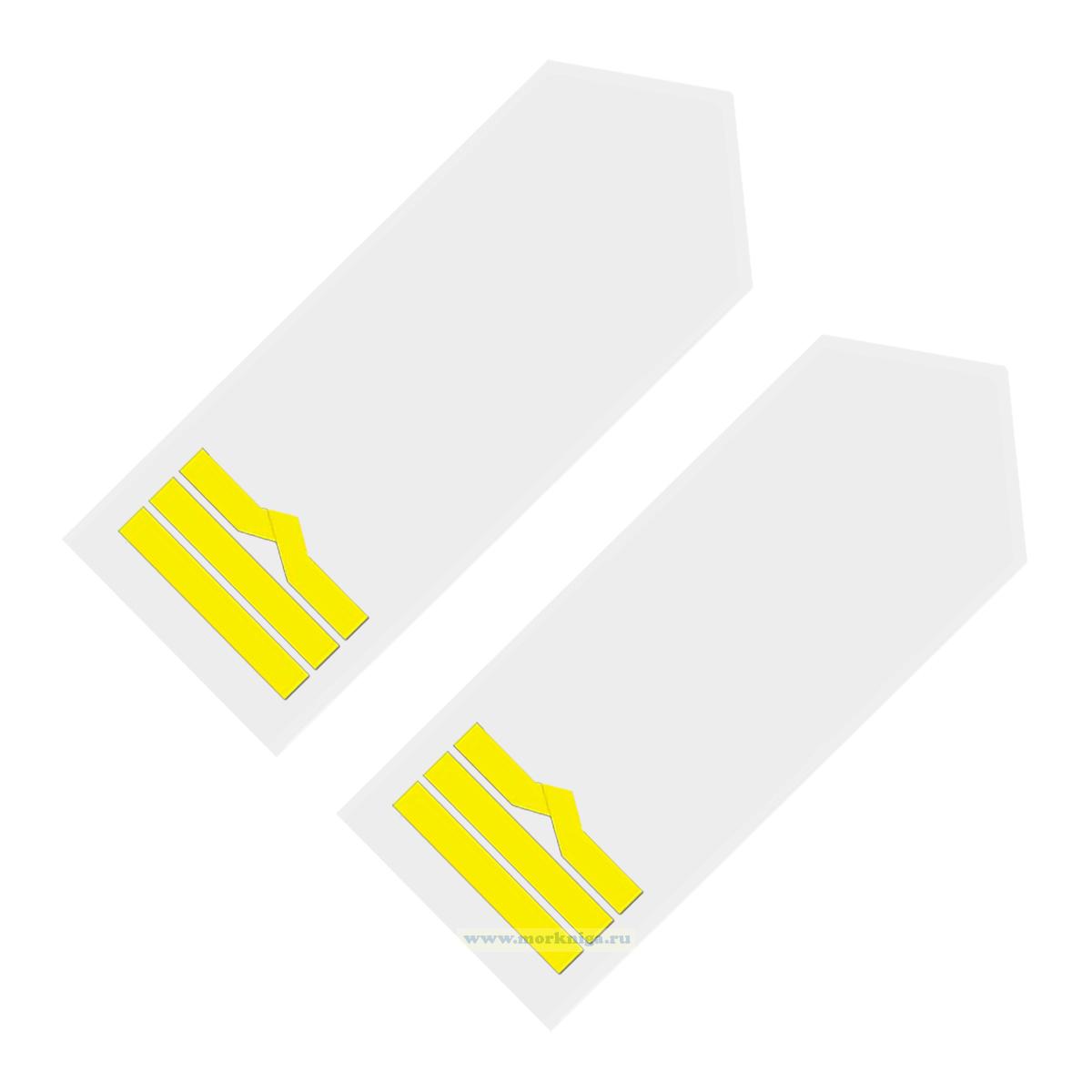 Погоны (речной транспорт), восьмая категория (штурман, 1-й помощник, 1-й механик, электро механик), мужские, съемные, белые, прямоугольные, 14х5 см (1305 руб.)