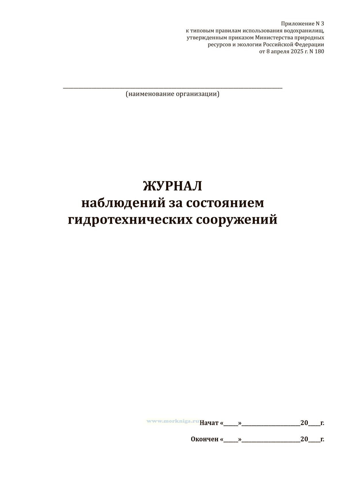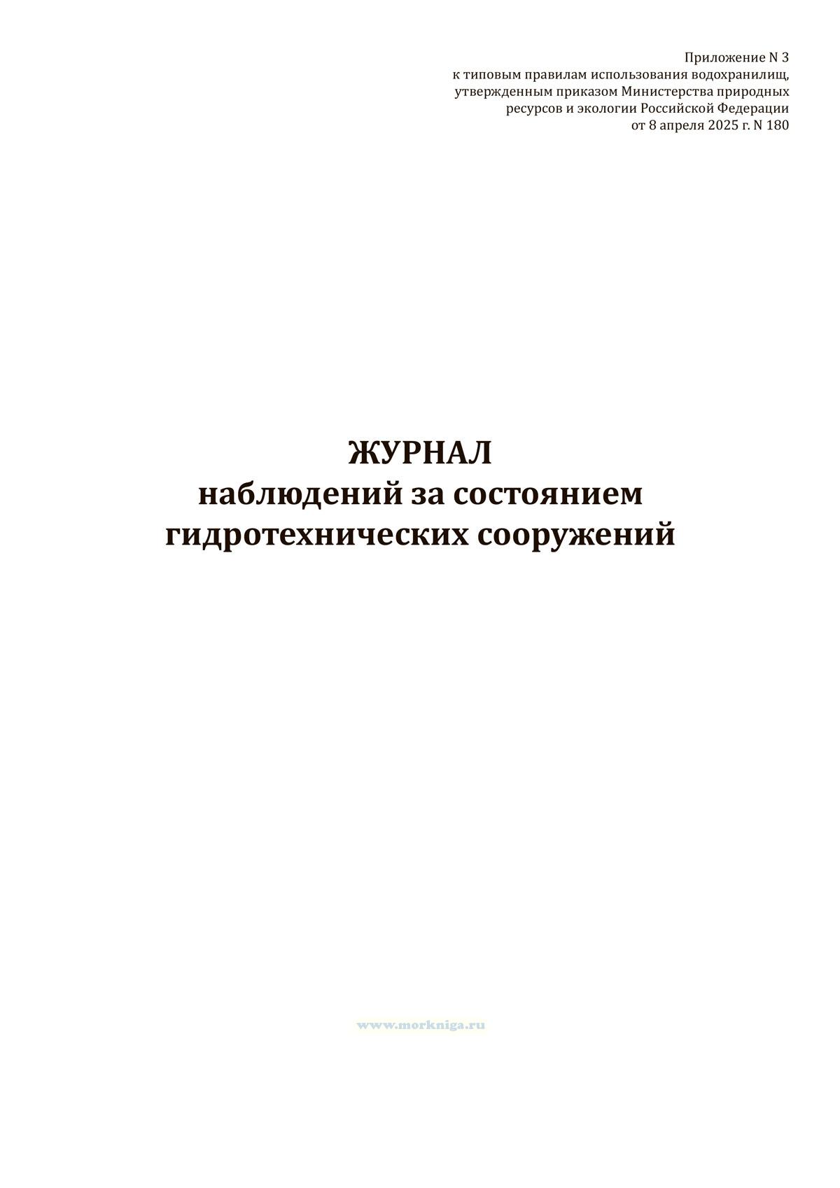 Форма Журнала наблюдений за состоянием гидротехнических сооружений соответствует Приложению N 3 к приказу Минприроды России от 08.04.2025 N 180 "Об утверждении типовых правил использования водохранилищ"