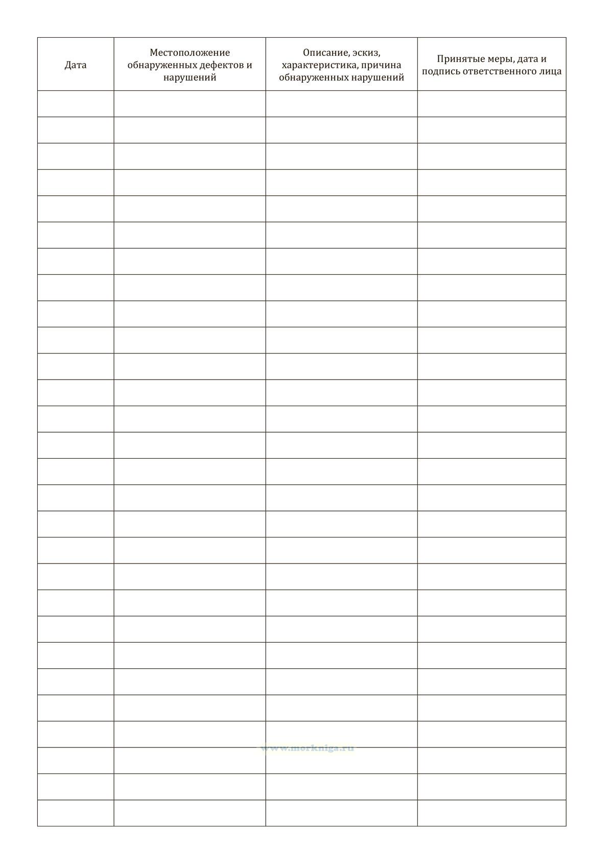 В журнал наблюдений за состоянием гидротехнических сооружений водохранилища заносятся данные об обнаруженных при проведении осмотров дефектах и нарушениях, а также сведения о принятых мерах по устранению указанных нарушений.
