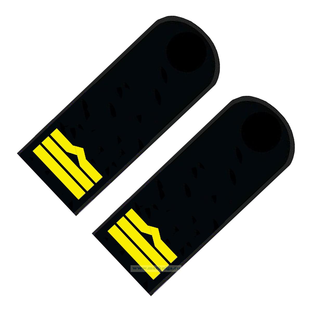 Погоны (речной транспорт), восьмая категория (штурман, 1-й помощник, 1-й механик, электро механик), мужские, нашивные, черные, прямоугольные, 14х5 см (1305 руб.)