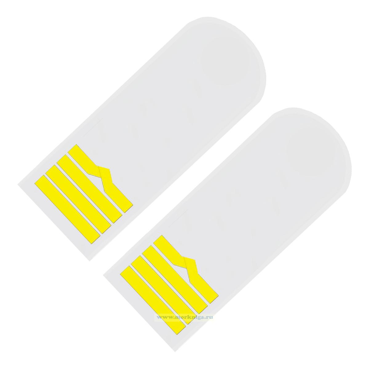 Погоны (речной транспорт), девятая категория (капитан речного судна, старший механик), мужские, нашивные, белые, прямоугольные, 14х5 см (1350 руб.)