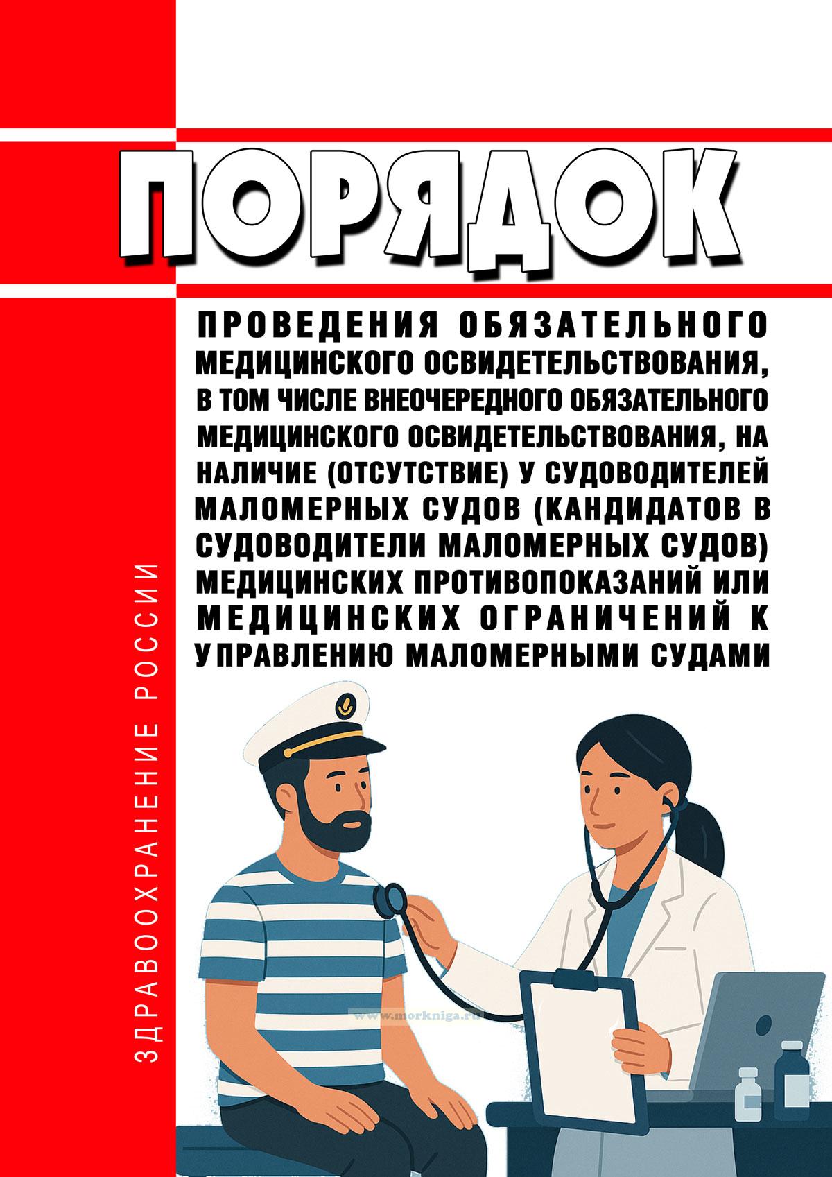 Обязательное медицинское освидетельствование, в том числе внеочередное обязательное медицинское освидетельствование, судоводителей маломерных судов (кандидатов в судоводители маломерных судов) проводится в целях определения наличия (отсутствия) у судоводителей маломерных судов (кандидатов в судоводители маломерных судов) медицинских противопоказаний или медицинских ограничений к управлению маломерными судами, перечень которых утвержден настоящим приказом.