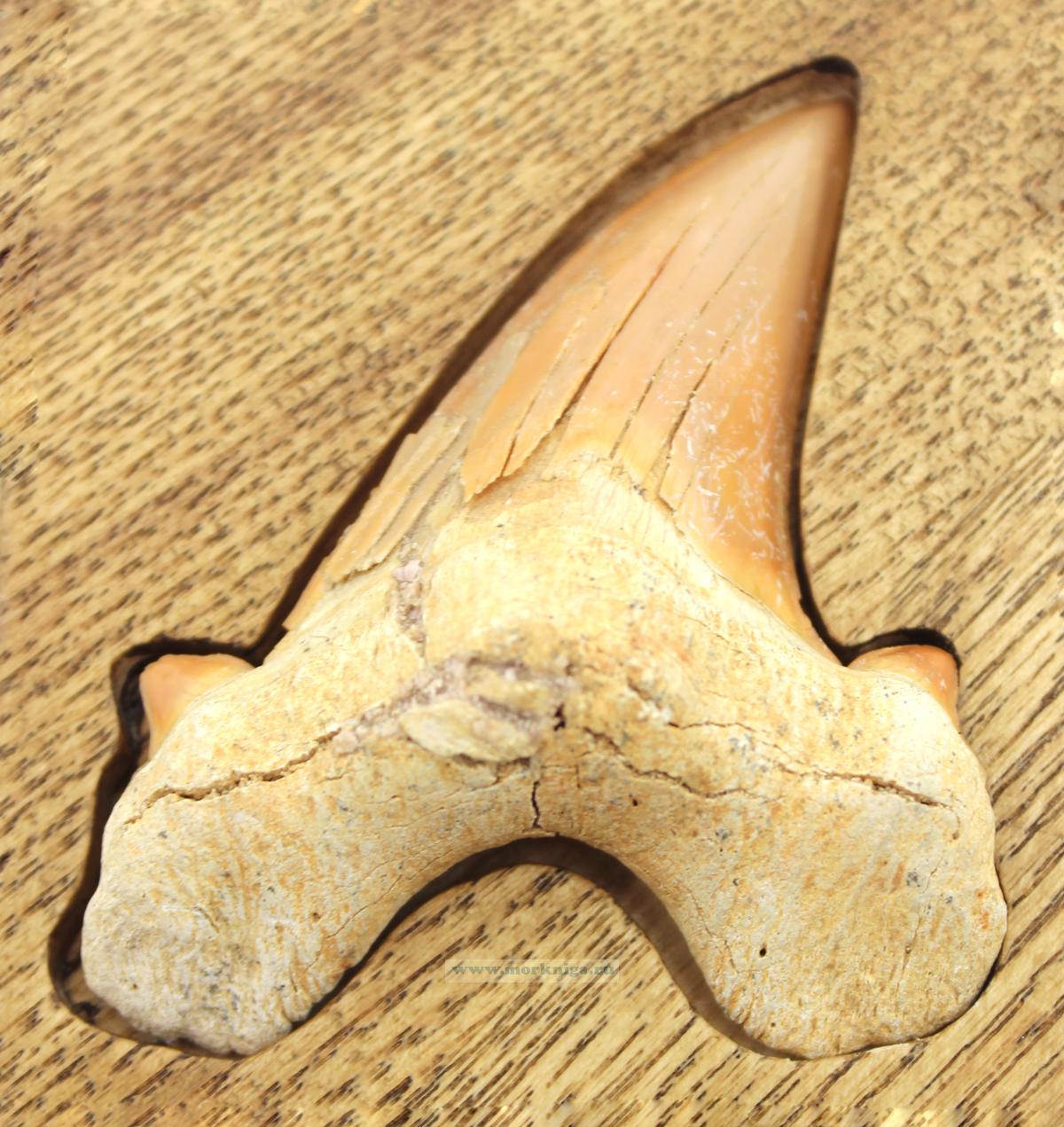 Ископаемый зуб доисторической акулы Otodus obliquus, возрастом около 60-45 миллионов лет (Палеоцен).