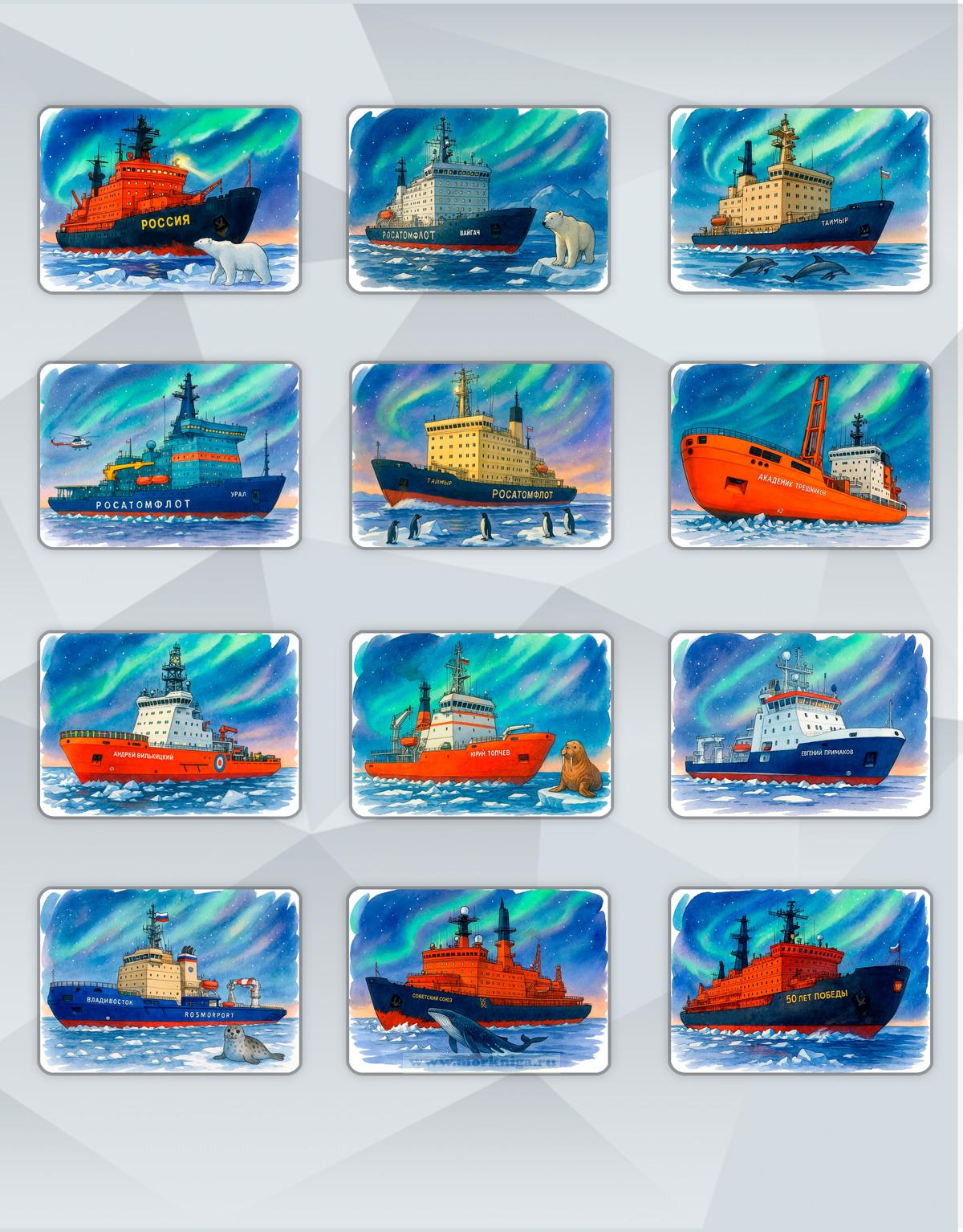 Набор календариков содержит изображения 12 ледоколов, сгенерированных нейросетью. Карманные календарики можно использовать в качестве дополнения к основному подарку. Милые иллюстрации, сгенерированные ИИ, подарят дополнительное настроение.