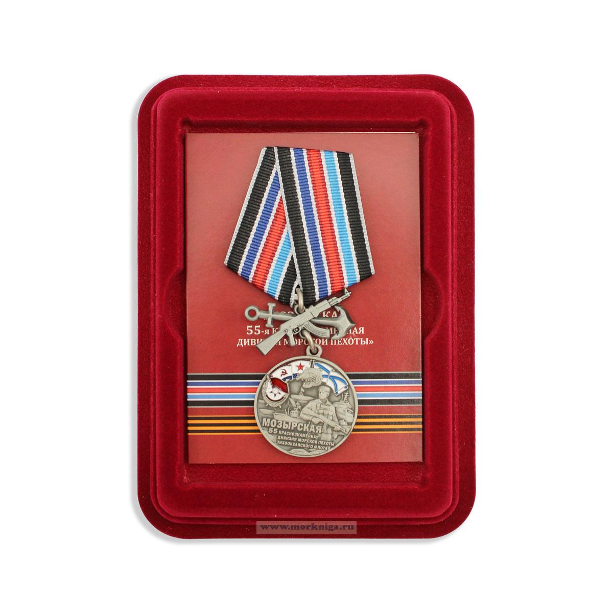 Памятная медаль посвящена героической 55-й Мозырской Краснознаменной дивизии морской пехоты Тихоокеанского флота, сформированной в 1968 году на базе 390-го отдельного полка морской пехоты. Последняя стала наследником 1?й Мозырской Краснознаменной стрелковой дивизии, получившей почетное наименование за освобождение города Мозыря в годы Великой Отечественной войны.