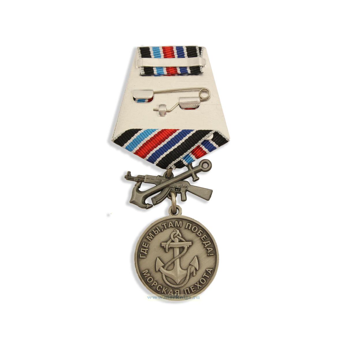 На аверсе медали изображен морской пехотинец в боевой экипировке на фоне кораблей и боевой техники, над которым - флаги ВМФ СССР и России. Внизу - надпись: "Мозырская 55-я Краснознаменная дивизия морской пехоты Тихоокеанского флота". На реверсе – символ морской пехоты, якорь, окруженный девизом: "Где мы - там победа! Морская пехота".