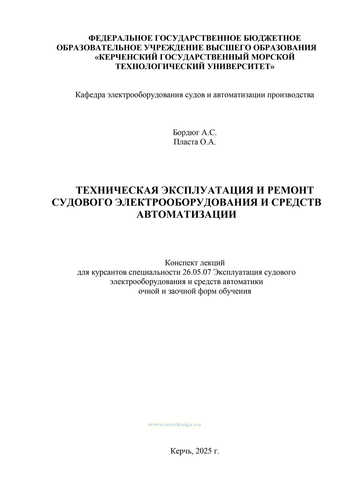 В книге раскрываются система технического обслуживания и ремонта судового электрооборудования, требования к его надежности и техническому состоянию. Описываются основные этапы эксплуатации, методы контроля, профилактики и ремонта, а также применение технической диагностики и автоматизированных систем для повышения эффективности и безопасности работы судов.