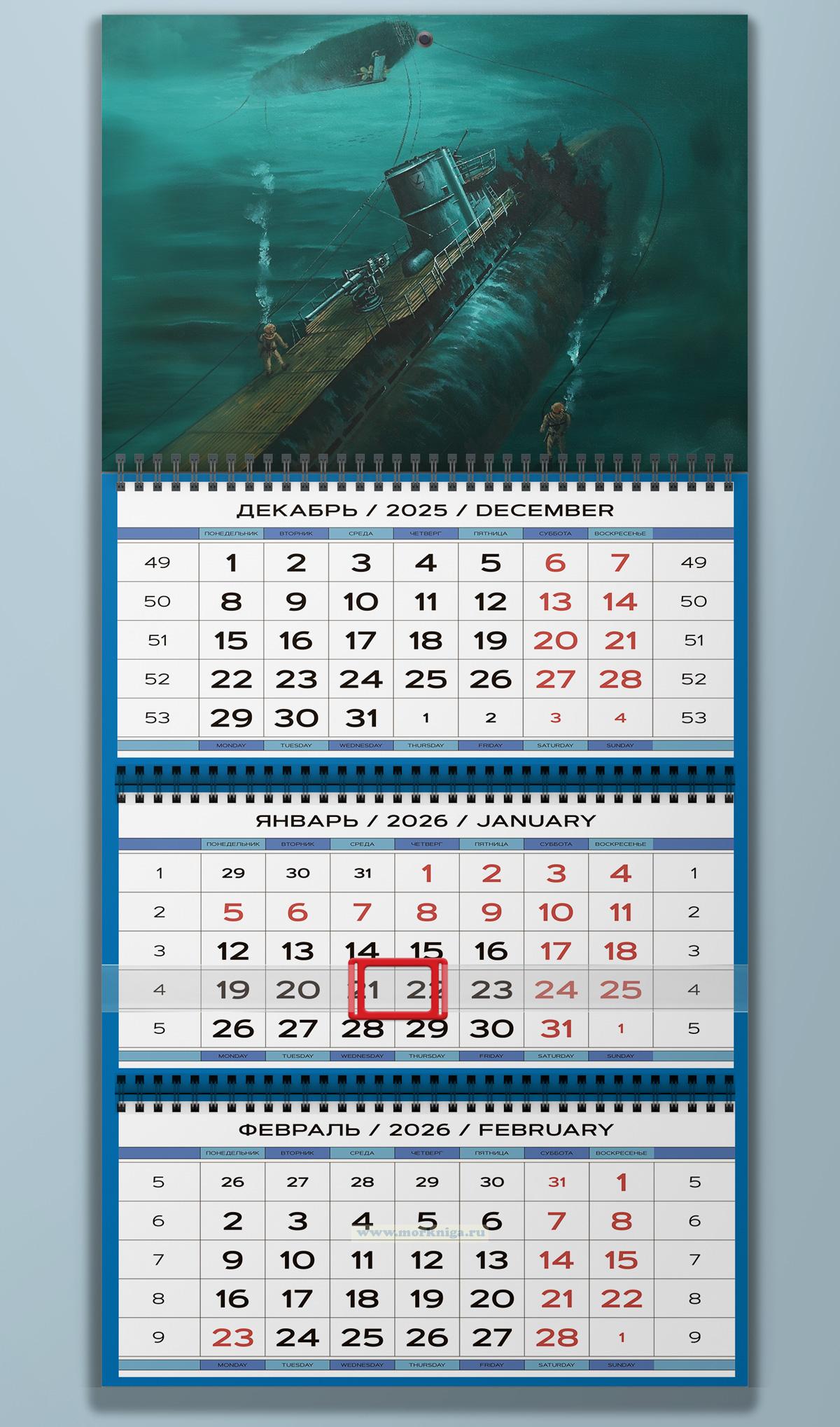 Календарь квартальный "Французские водолазы обследуют затонувшую немецкую подводную лодку" на 2026 год