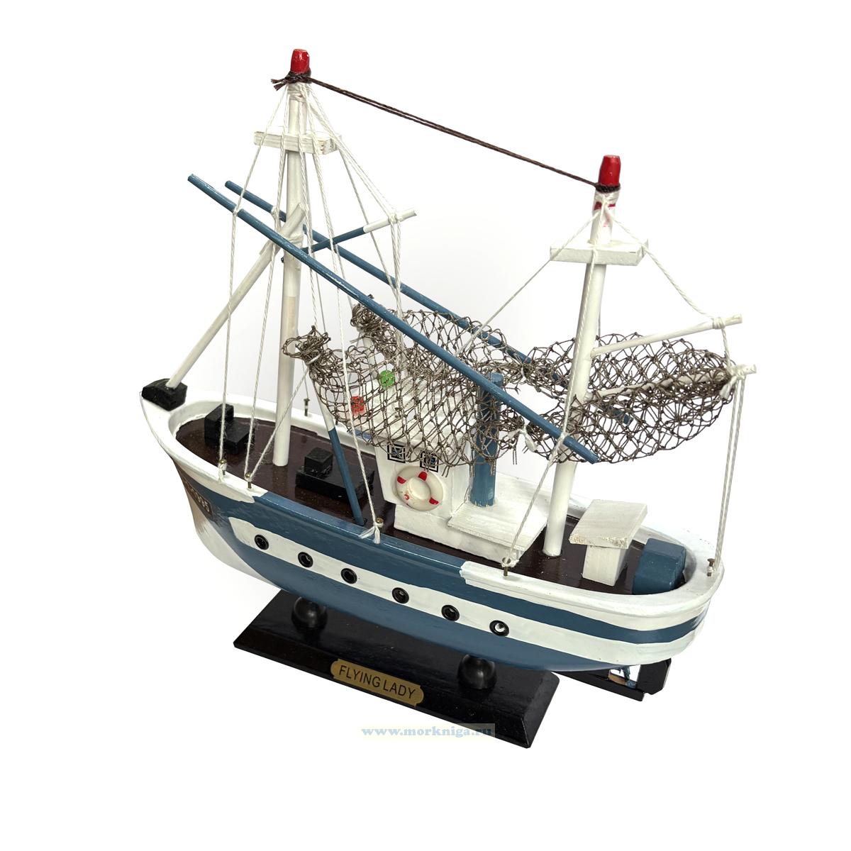 Сувенирный корабль "Ида" - стильный декоративный элемент, который добавит интерьеру атмосферу морского уюта и приключений. Эта миниатюрная модель рыболовецкого судна выполнена из дерева и украшена сетями, мачтами, канатами и спасательным кругом, что делает её реалистичной и детализированной. Корабль стоит на прочной подставке с табличкой FLYING LADY и станет эффектным акцентом в комнате, офисе или кафе. Сувенир идеально подойдёт в подарок мужчинам и женщинам, которые любят море, путешествия и коллекционные модели. Компактные размеры позволяют разместить модель на полке, тумбе или в витрине. Корабль "Ида" - это гармония ручной работы, уюта и морского стиля, которая будет радовать владельца долгие годы.