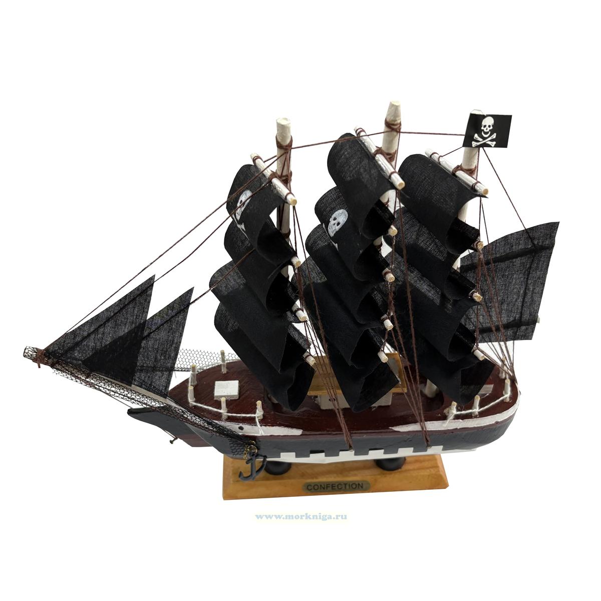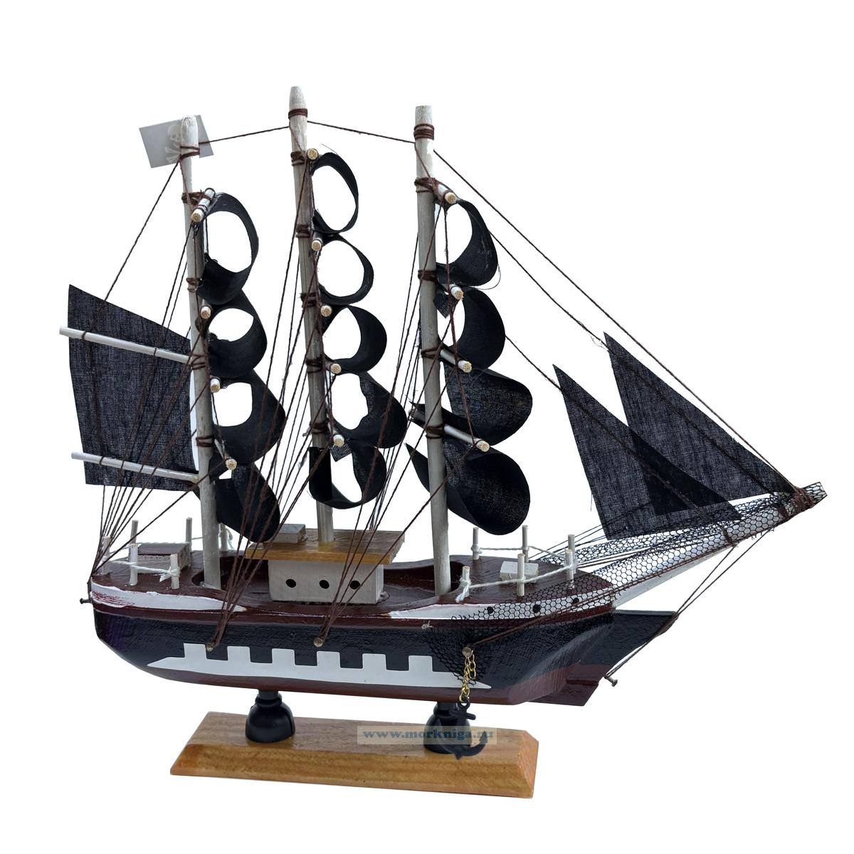 Сувенирный корабль "Пиратский. Аризона" - декоративная модель парусника с чёрными парусами, созданная для тех, кто любит атмосферу приключений и морской романтики. Корабль выполнен из дерева, дополнен тканевыми парусами, металлическими элементами и стоит на прочной деревянной подставке. Реалистичная детализация, качественная сборка и символика пиратского флага делают эту модель настоящим украшением интерьера. Сувенир идеально подходит для подарка мужчине, коллеге, другу или ребёнку, который увлекается морской тематикой. Корабль "Аризона" украсит полку, кабинет, гостиную или детскую комнату, придавая пространству особый характер и дух свободы.