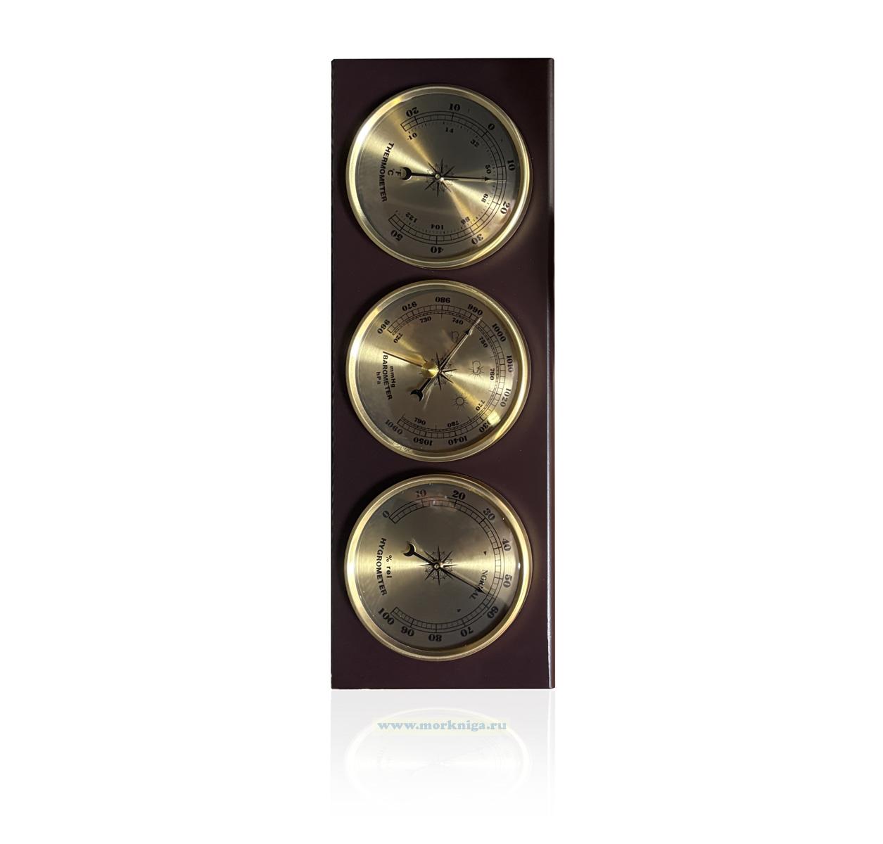 Элегантный механический барометр с гигрометром и термометром - стильное и практичное устройство для контроля микроклимата в доме, офисе или на даче. Благодаря классическому дизайну с латунными циферблатами и деревянным корпусом прибор станет не только полезным, но и декоративным элементом интерьера.