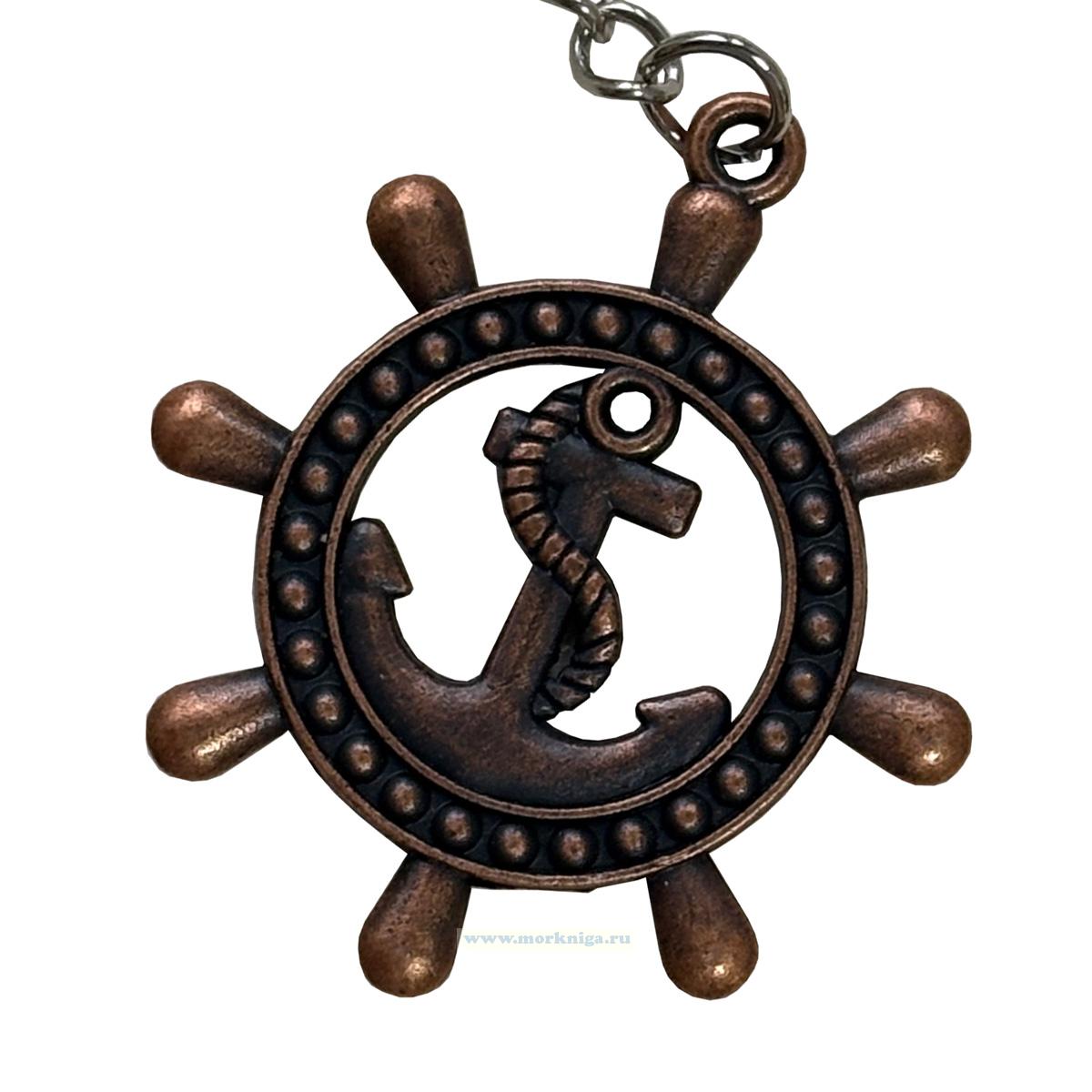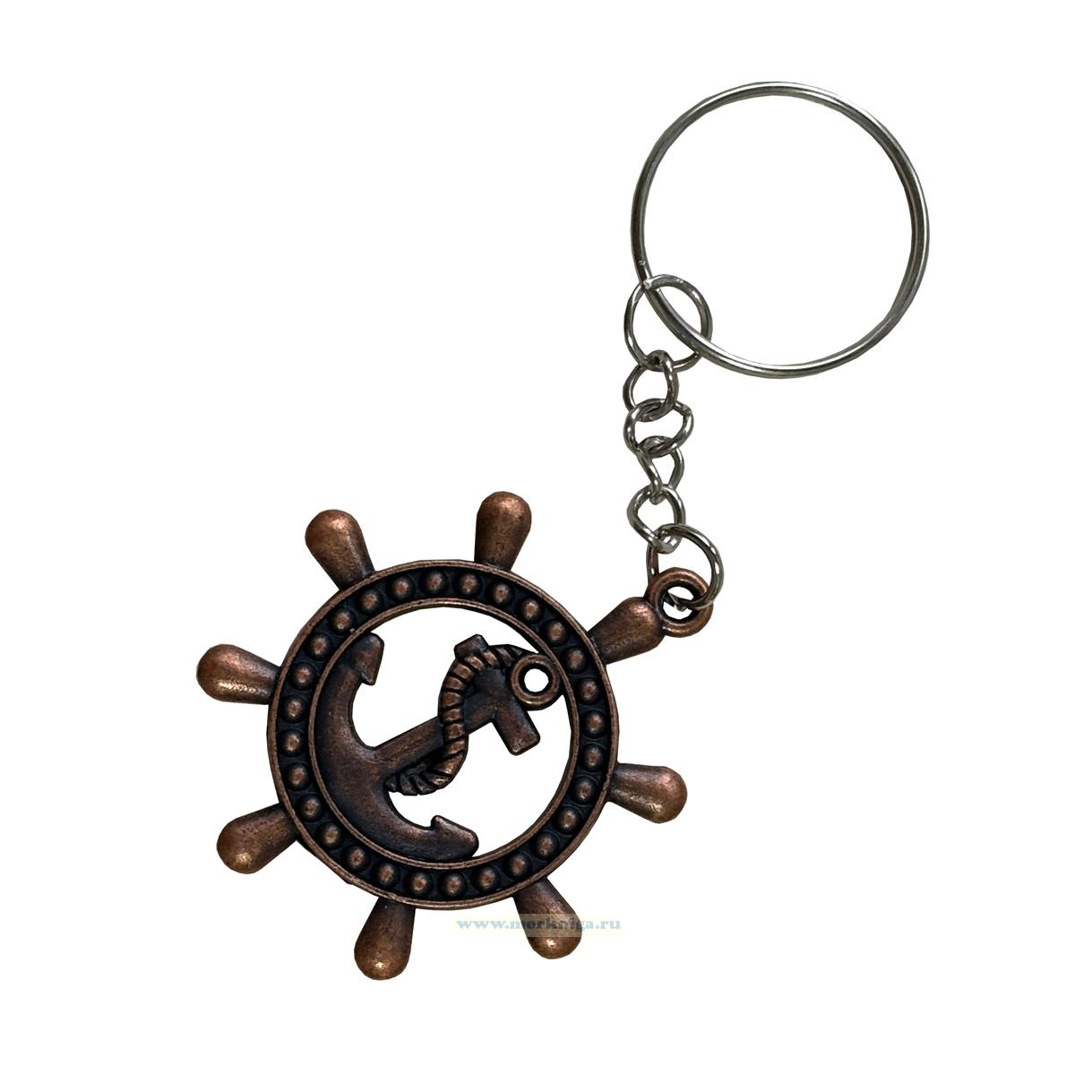 Стильный брелок "Штурвал с якорем" - отличный аксессуар для ключей, рюкзака или автомобиля. Изготовлен из прочного металла с изысканным бронзовым покрытием, придающим изделию винтажный морской шарм. Дизайн в виде штурвала с якорем символизирует надежность, уверенность и мужской характер.