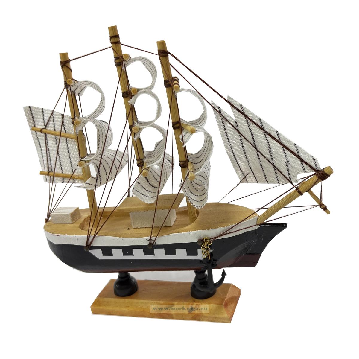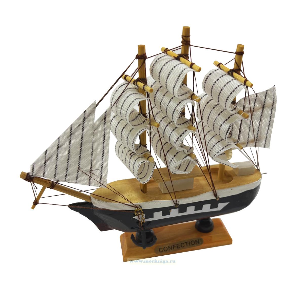 Сувенирный корабль "Фараон" - изысканная миниатюрная модель с чёрно-белыми парусами и деревянным корпусом. Этот корабль сочетает в себе элементы морской и египетской тематики, создавая уникальный акцент в вашем интерьере. Он станет стильным элементом декора в гостиной, офисе или на полке, а также отличным подарком для коллекционеров и поклонников морской тематики. Корабль установлен на прочной подставке с табличкой CONFECTION, что делает его ещё более привлекательным и ценным.