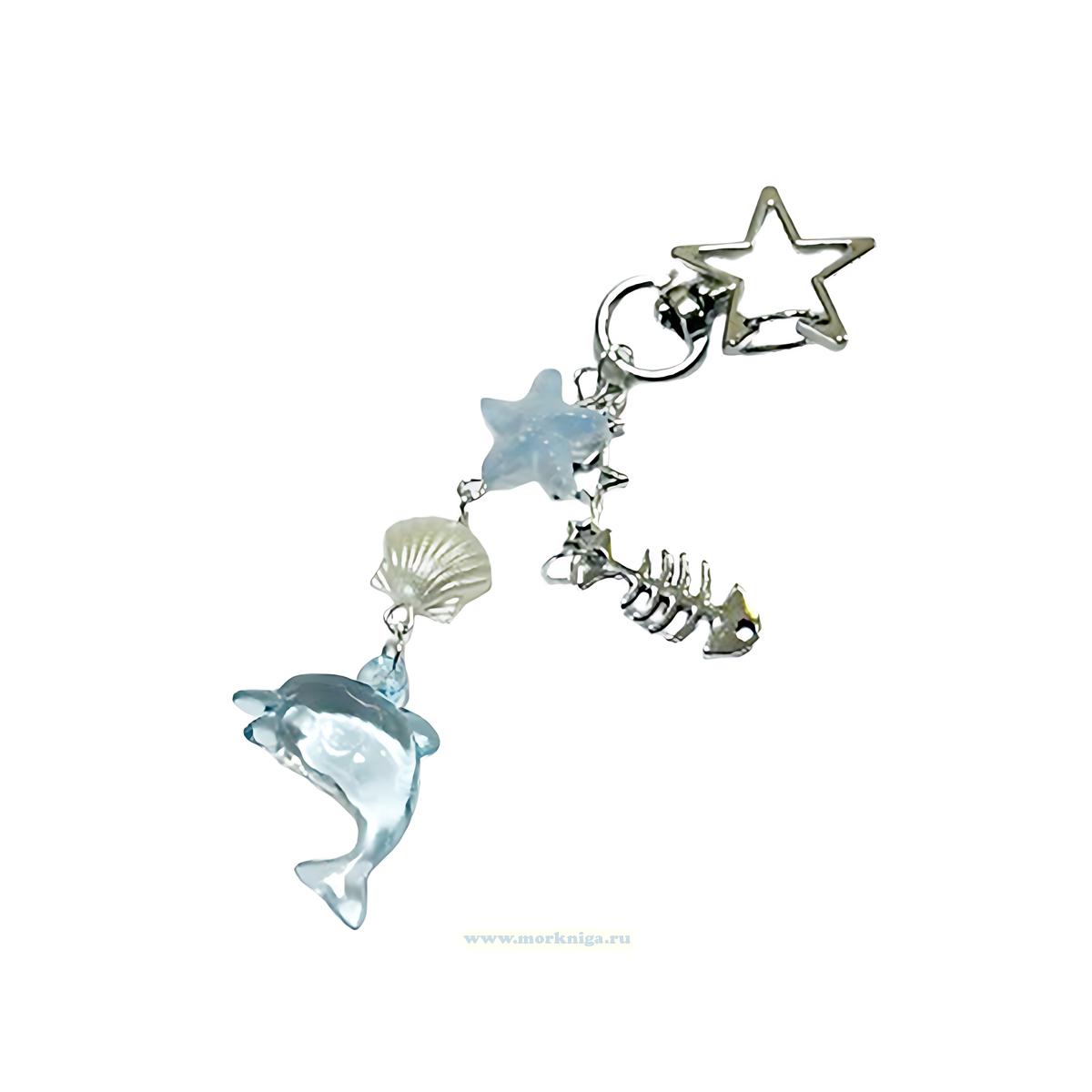 Морской брелок с подвесками - стильный и легкий аксессуар, который станет ярким акцентом на ключах, рюкзаке или сумке. Изделие сочетает металлическую основу в виде звезды и декоративные элементы из пластмассы: дельфина, морскую звезду, ракушку и рыбный скелет. Такой брелок не только смотрится необычно и привлекает внимание, но и подчеркивает летнее настроение и любовь к морской тематике. Он легкий, компактный, удобный в использовании и идеально подходит как маленький подарок, сувенир или приятное дополнение к любому образу.