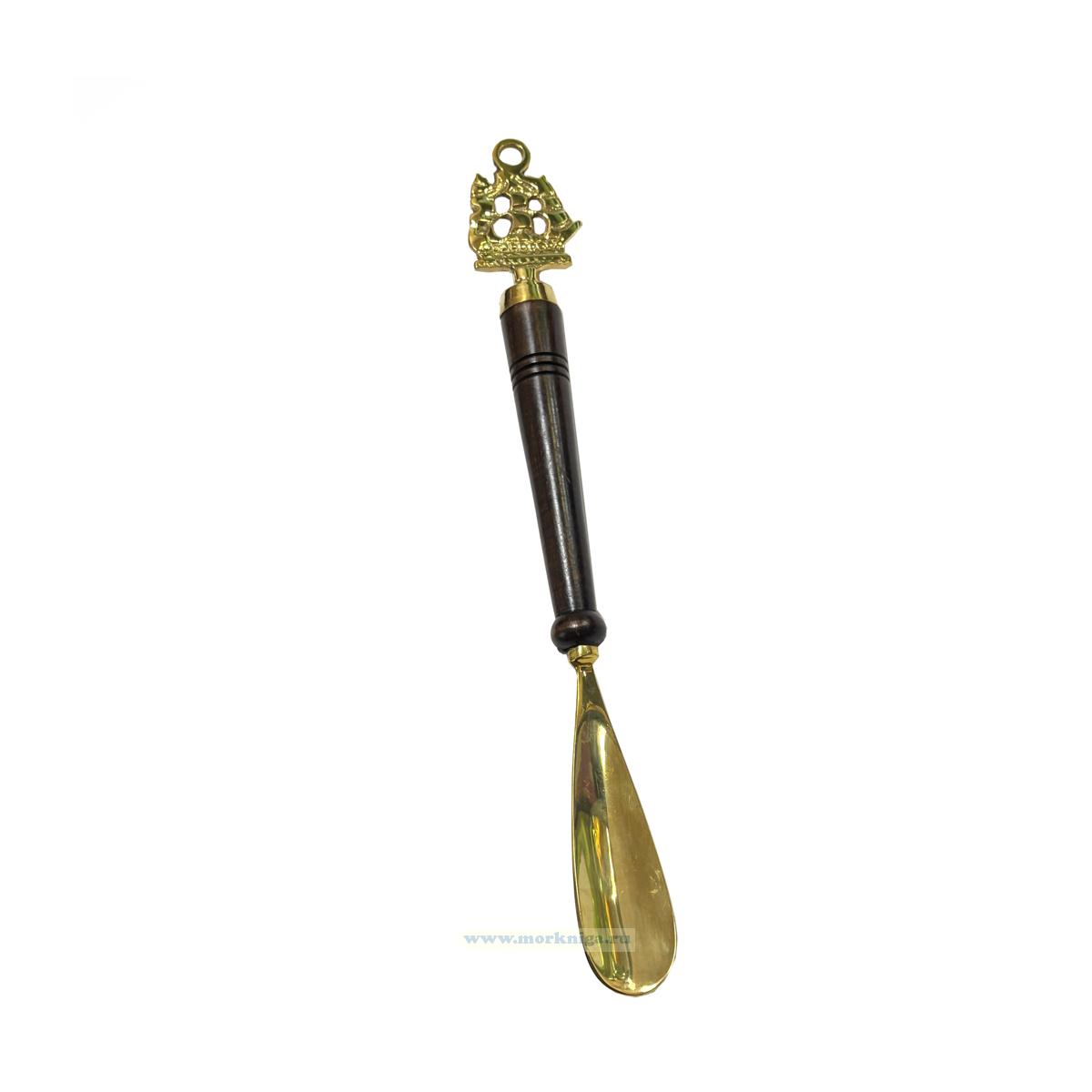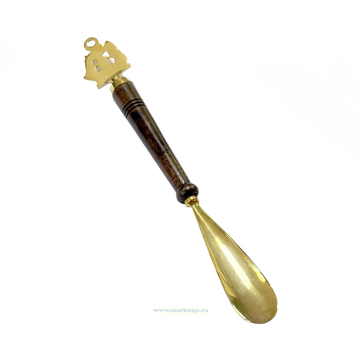 Ложка для обуви на деревянной ручке "Парусник" - стильный и практичный аксессуар, который делает процесс надевания обуви максимально удобным и бережным. Благодаря длине 36 см рожок позволяет надевать обувь, не наклоняясь слишком низко, что особенно удобно для повседневного использования. Рабочая часть выполнена из прочной латуни, устойчивой к деформации и долгий срок сохраняющей свой золотистый блеск. Деревянная ручка приятна на ощупь, обеспечивает удобный хват и украшена декоративным элементом в виде парусника, что делает рожок не только полезным, но и эстетичным предметом интерьера. Такой аксессуар станет отличным подарком для ценителей качественных вещей и морской тематики - дома, в офисе или в прихожей он всегда будет выглядеть эффектно и служить долгие годы.