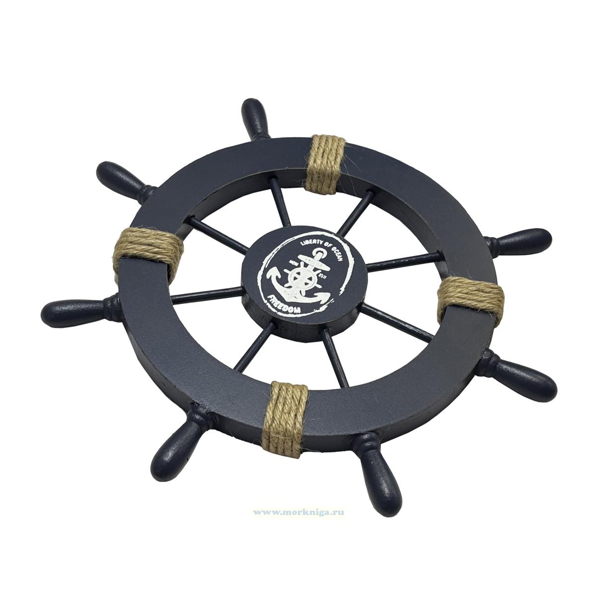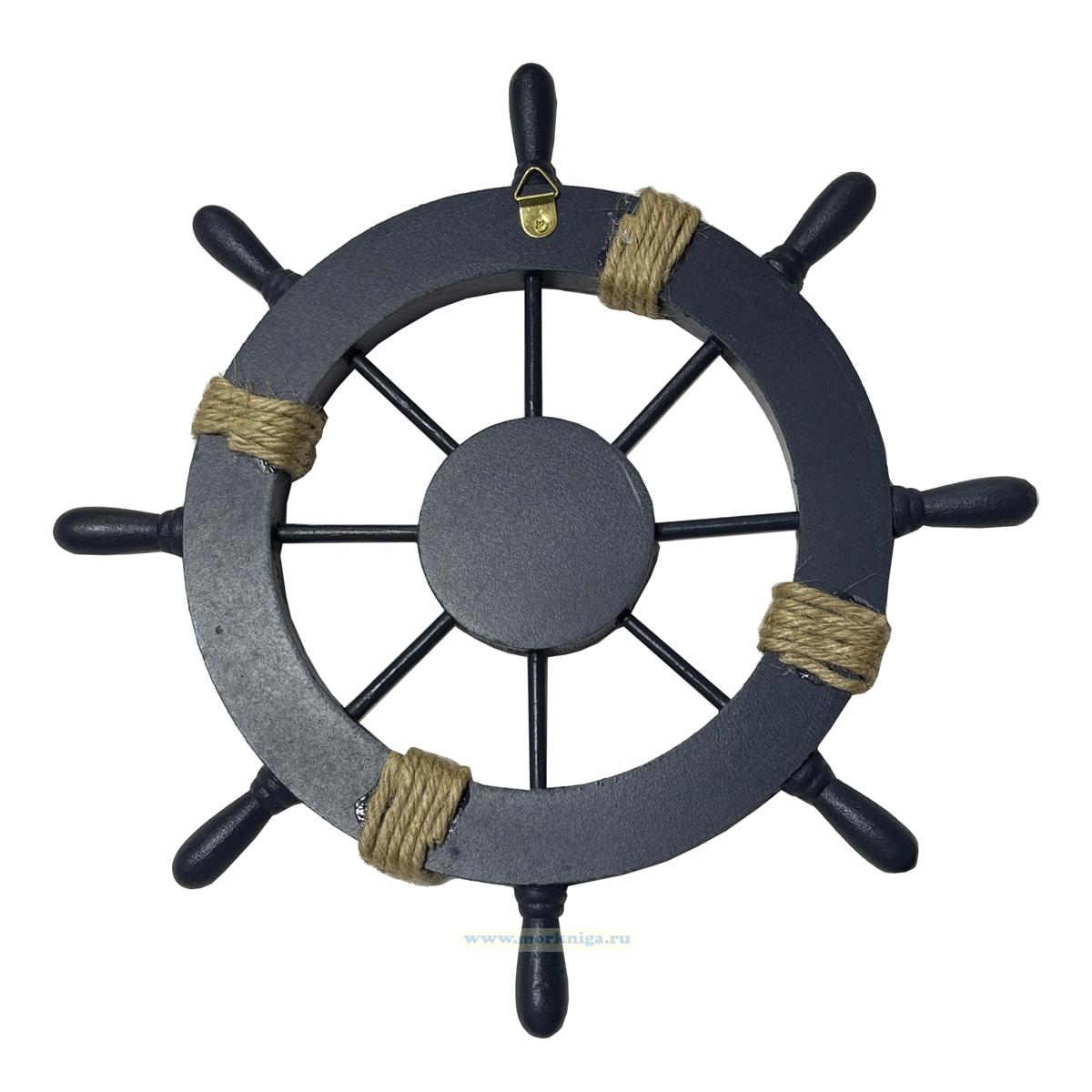 Декоративный штурвал в насыщенном синем цвете - стильный элемент интерьера в морской тематике. Подходит для украшения дома, офиса, детской комнаты, кафе, фотозоны или тематических мероприятий. Натуральное дерево, джутовая нить и аккуратная роспись создают атмосферу настоящего морского приключения.
