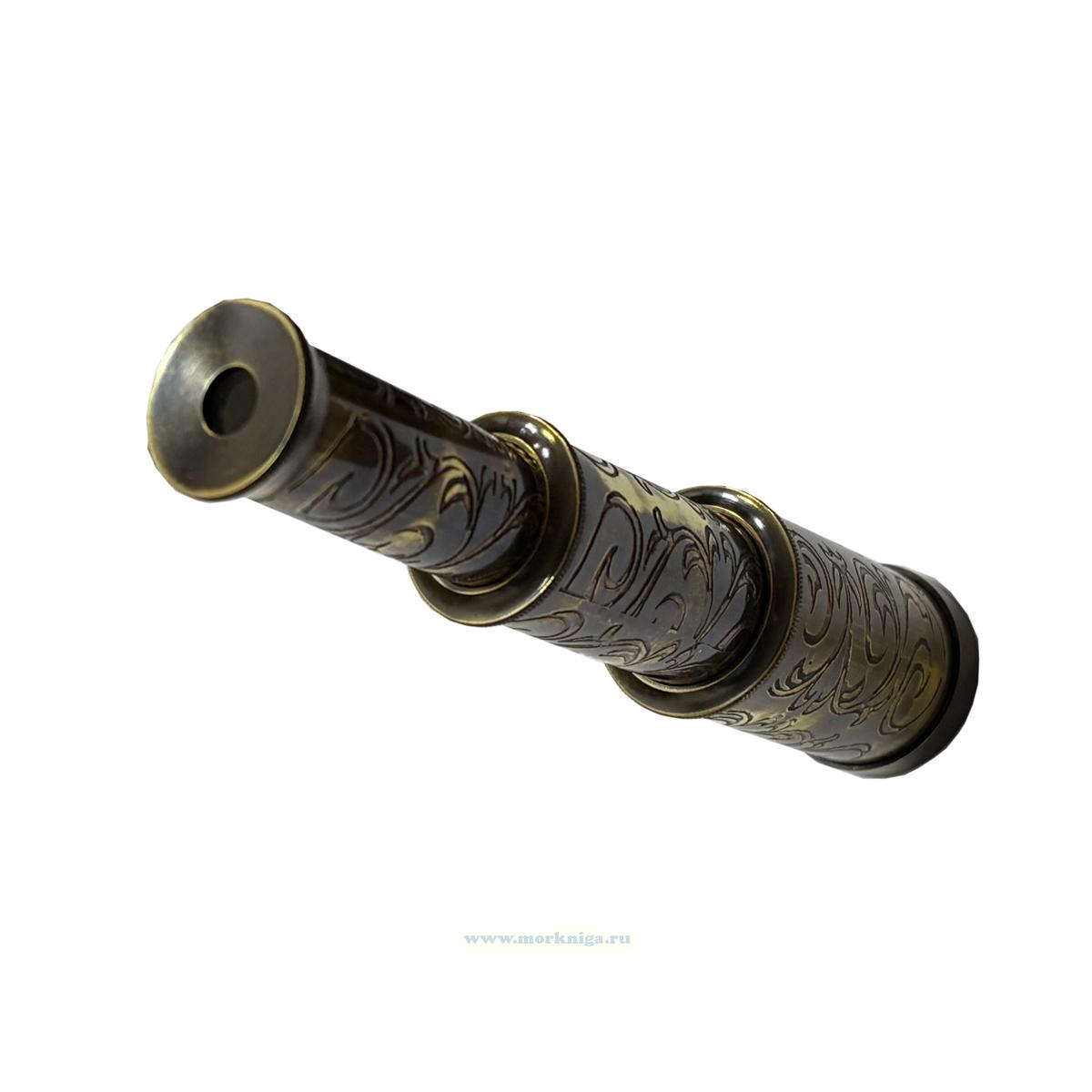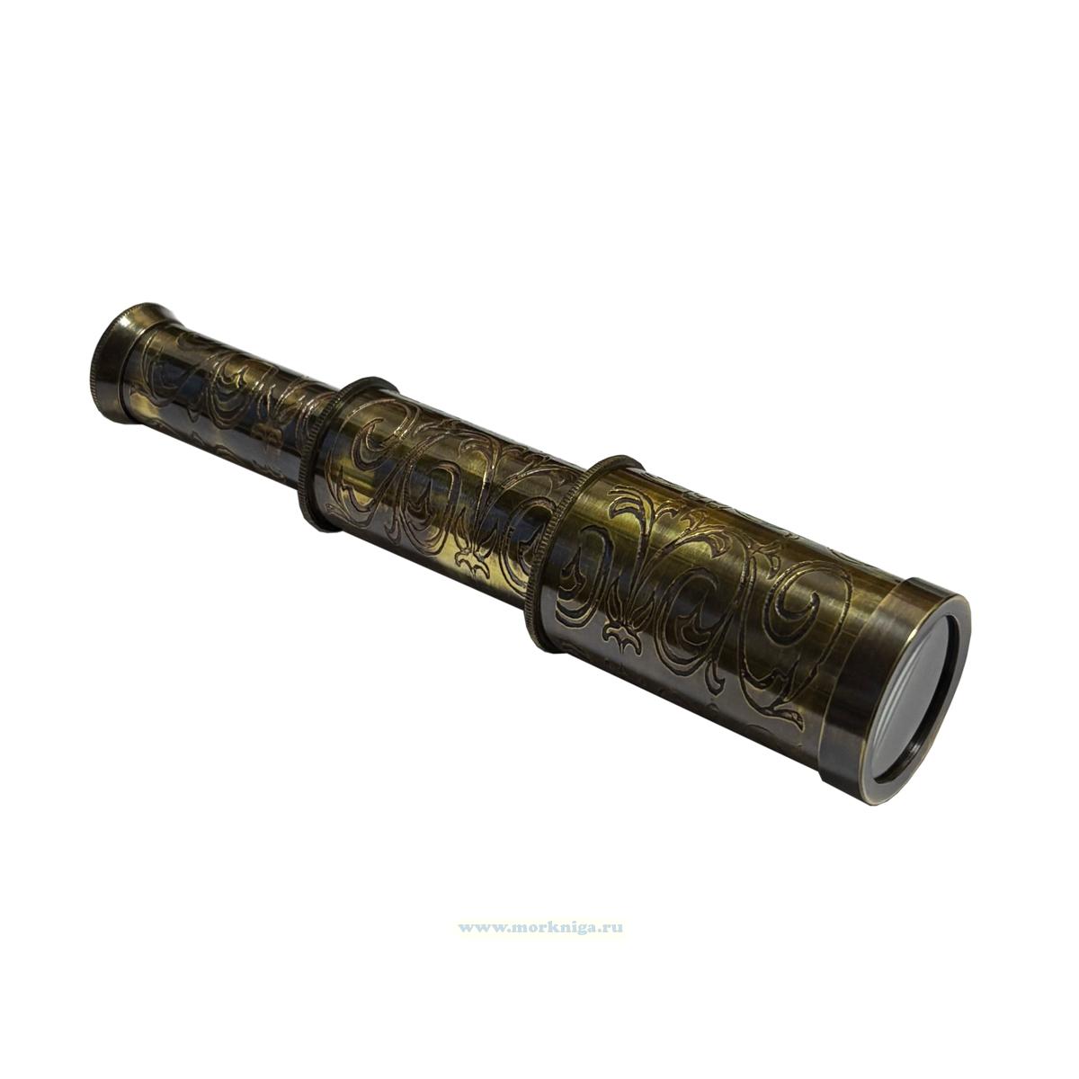 Элегантная подзорная труба в винтажном стиле - эффектный аксессуар для коллекционеров, путешественников и ценителей морской тематики. Корпус украшен ажурным декоративным рисунком, создающим ощущение старинного предмета навигации.