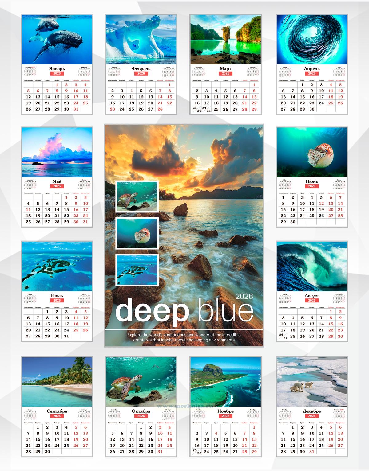 • Календарь настенный, перекидной "Deep blue.Explore the world’s... " на 2026 год