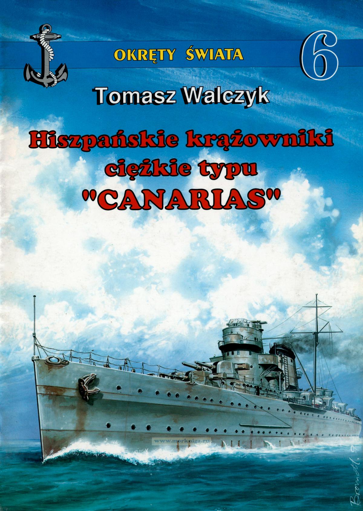 W niniejszej pracy przedstawione zostaty konstrukcja i dzieje hiszpanskich krazownikow ciezkich typu Canarias. Ich prezentacja bedzie jak sadze interesujqcym uzupelnieniem do monografii krazownikow ciezkich typu County , ktorych byly modyfikacja. Bedzie to rowniez mozliwosc zapoznania sie ze znaczacym etapem dziejow marynarki hiszpariskiej, ktora nie jest znana zbyt szerokiemu gronu milosnikow historii okretow wojennych. Trzeba podkreslic,ze jej rola w okresie wojny domowej w Hiszpanii 1936-1939, zwlaszcza w okresie poczatkowym byla bardzo znaczaca i wywarla powazny wptyw na pomyslny przebieg wojny dla sil gen. Franco. Oba krazowniki hiszpahskie zapisaly sie w szczegolny sposob w powszechnej historii krazownikow. Byty bowiem pierwszymi tzw. krazownikami waszyngtonskimi, ktore wziely udzial w dzialaniach bojowych; Baleares byl tez pierwszym okretem tego rodzaju, jaki zostal zatopiony. Z kolei Canarias, niewatpliwie najstynniejszy okret hiszpanski XX w., zostal skreslony z listy floty, jako ostatni z istniejacych w swiecie krazownikow waszyngtonskich. Obecna monografia przedstawia blisko 50-letnia historie tych ciekawych krqzownikow ciezkich.