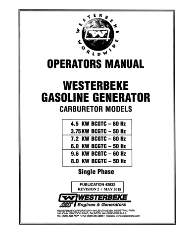 The book is a detailed guide to the operation, maintenance and repair of Westerbeke generators and engines, including starting, diagnostics and troubleshooting.