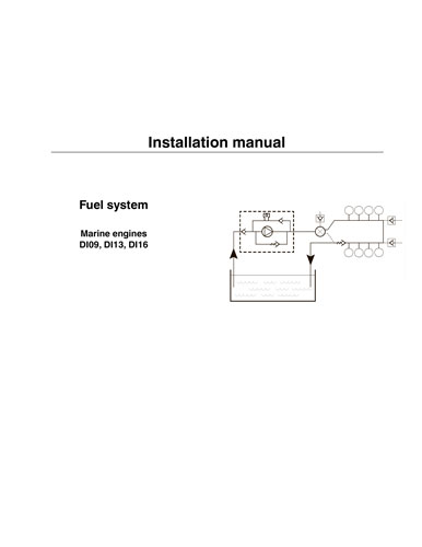 This is a fuel system installation guide for marine engines DI09, DI13 and DI16. It describes the changes compared to the previous release, the location and design of the fuel tanks (main and buffer), the features of the fuel lines and filters for the PDE and XPI engines. Fuel cooling systems, fuel flow and pressure parameters, fire prevention measures, fuel quality requirements and power characteristics for PDE engines are also considered. Important technical data is provided at the end.