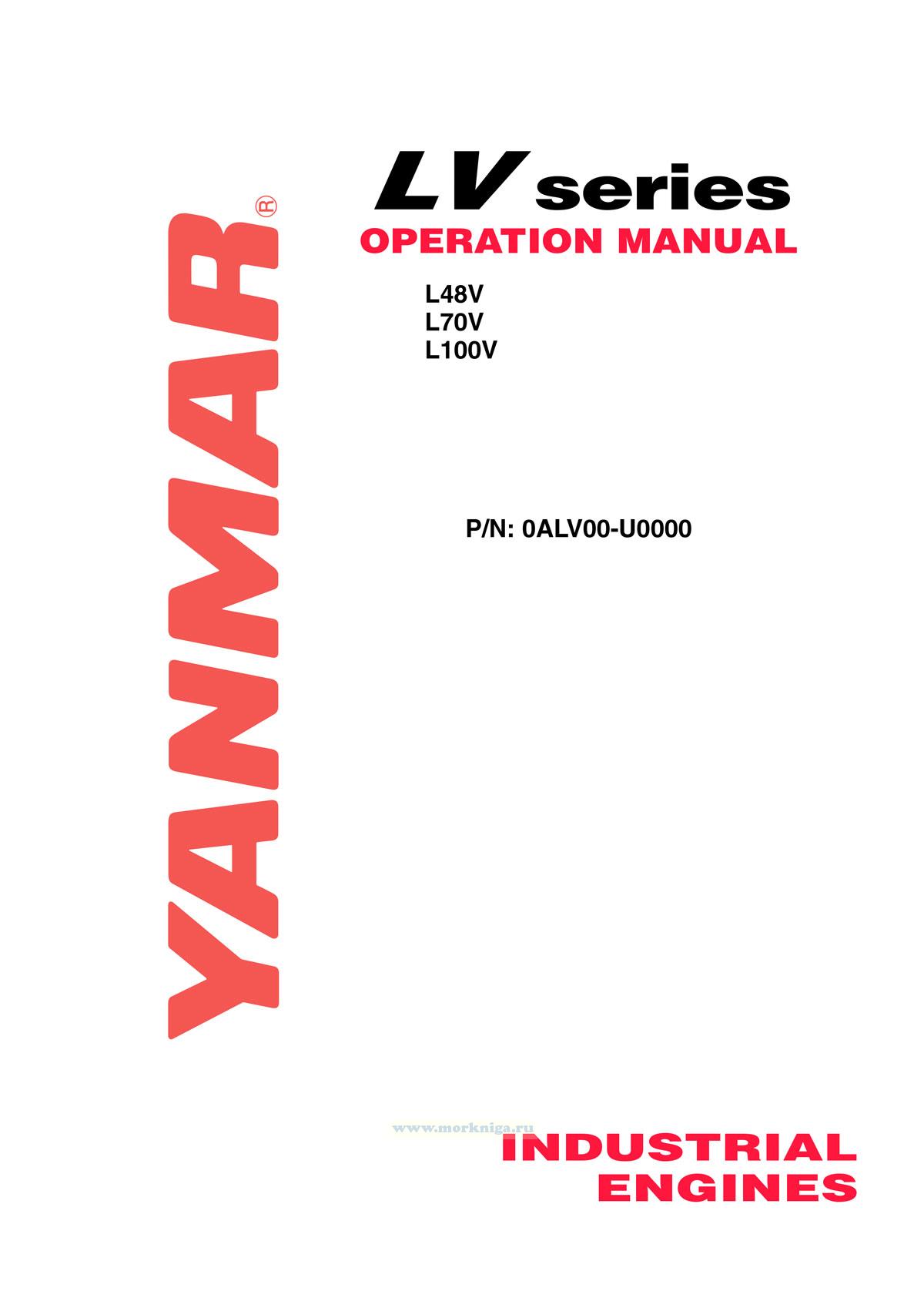 The manual contains instructions for the safe use, operation and maintenance of Yanmar LV series engines (models L48V, L70V, L100V). It describes precautions related to fire and explosion hazards, as well as procedures for starting and stopping the engine, adjusting the speed and checking its operation. The manual includes schedules for periodic maintenance, troubleshooting, and long-term engine storage. The technical characteristics of the engines, including power, fuel requirements and operating temperatures, are also indicated.