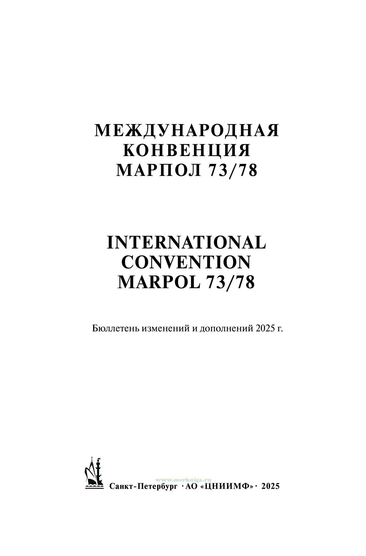 В настоящее издание включены поправки к Международной Конвенции по предотвращению загрязнения с судов 1973 г., измененной Протоколом 1978 г. к ней (Конвенция МАРПОЛ-73/78), принятые на 81 сессии КЗМС (МЕРС) 22.03.2024 г. и на 82 сессии КЗМС (МЕРС) 04.10.2024 г.