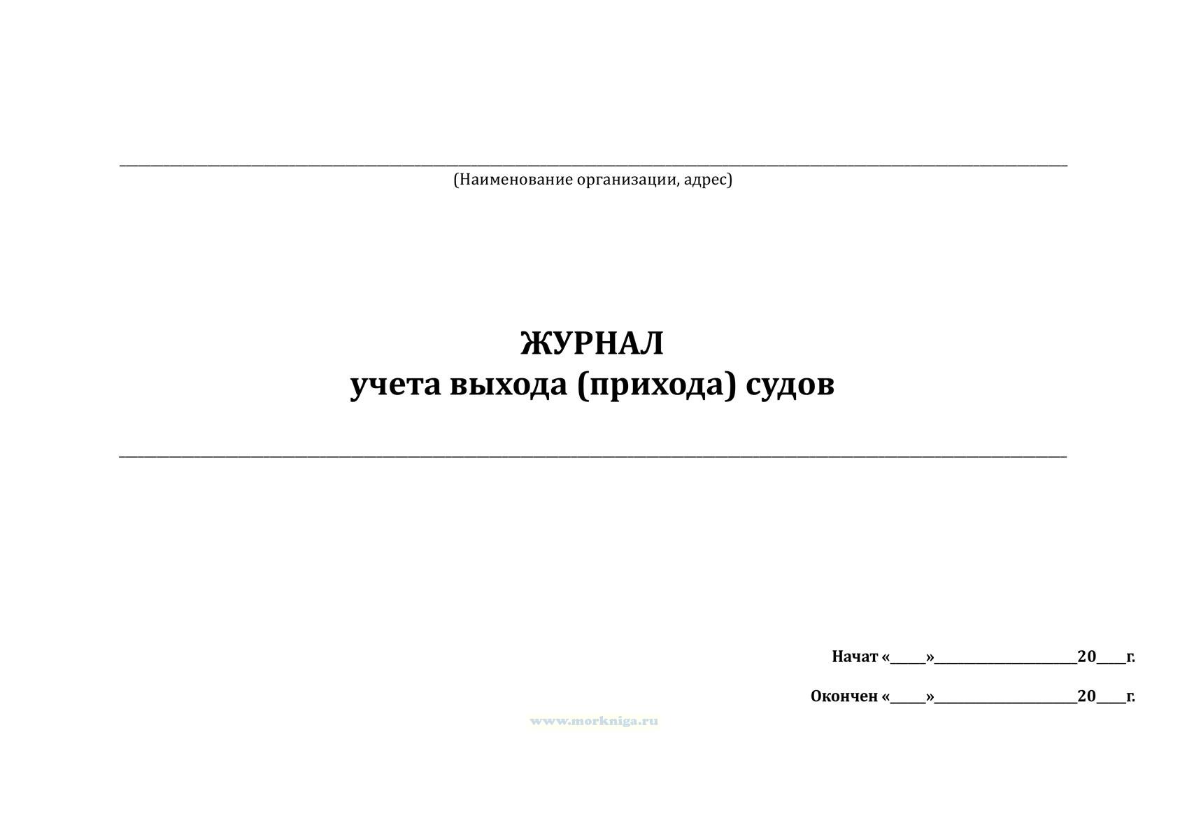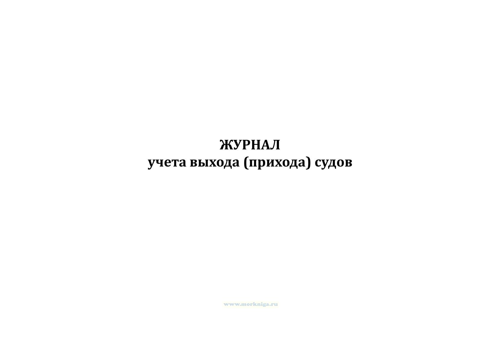 Журнал применяется для учета и контроля выхода и прихода судов, фиксации сведений о судне, судоводителе, маршруте, количестве людей на борту и времени возвращения, а также для обеспечения безопасности плавания и оперативного контроля за передвижением судов. Журнал учета выхода/прихода судов имеет графы: № п/п Бортовой номер судна ФИО судоводителя Количество людей на борту Дата и время выхода Маршрут Предполагаемое время возвращения Фактическое время возвращения Примечание