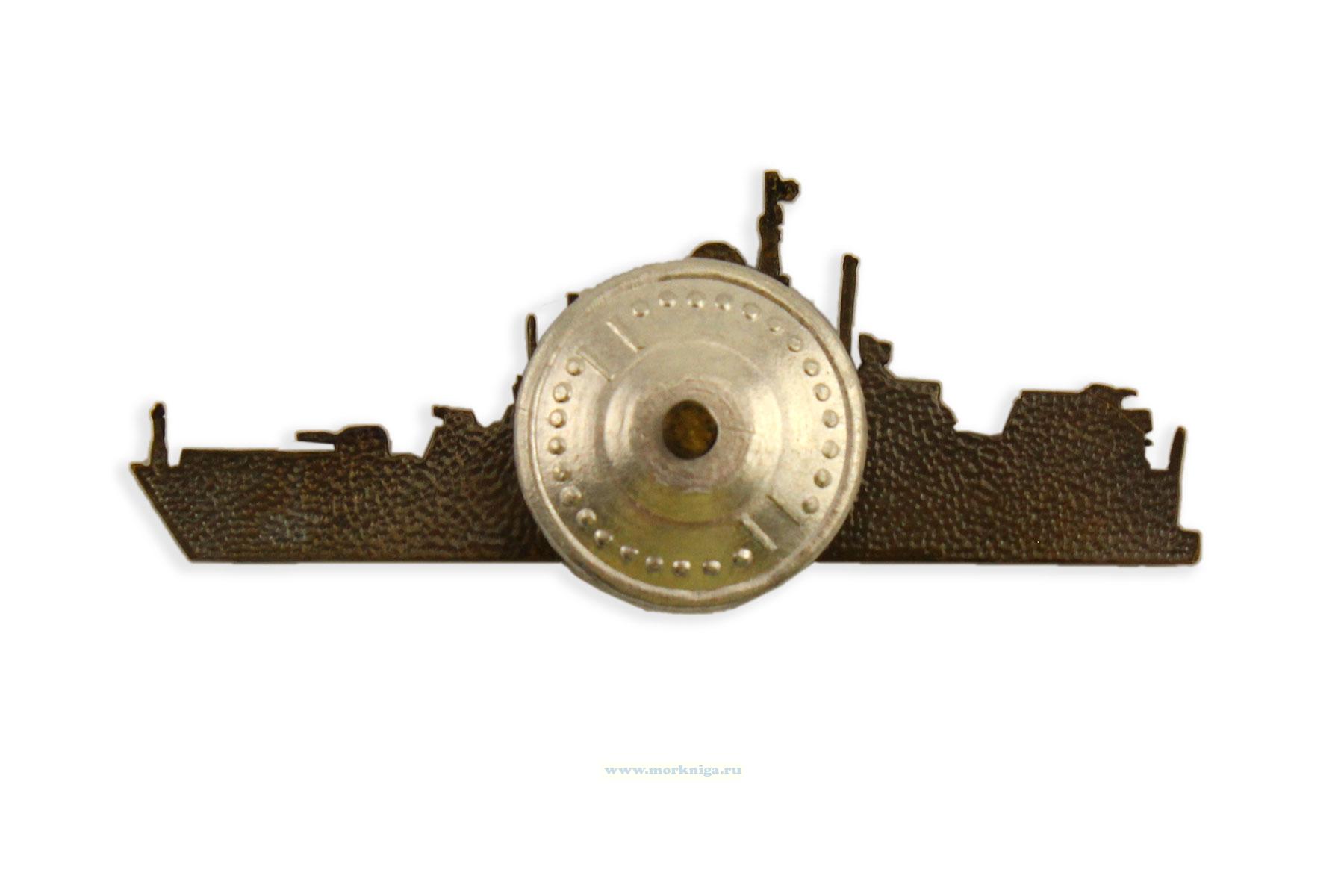 Нагрудный знак, посвященный малому ракетному кораблю на воздушной подушке "Бора" - головному кораблю проекта 1239 Черноморского флота России. Знак отражает уникальные тактико-технические особенности корабля, сочетающего высокую скорость, маневренность и мощное ракетное вооружение. Предназначался для военнослужащих экипажа, ветеранов службы, а также как памятный и коллекционный знак, связанный с историей и службой корабля "Бора" в составе ВМФ России.
