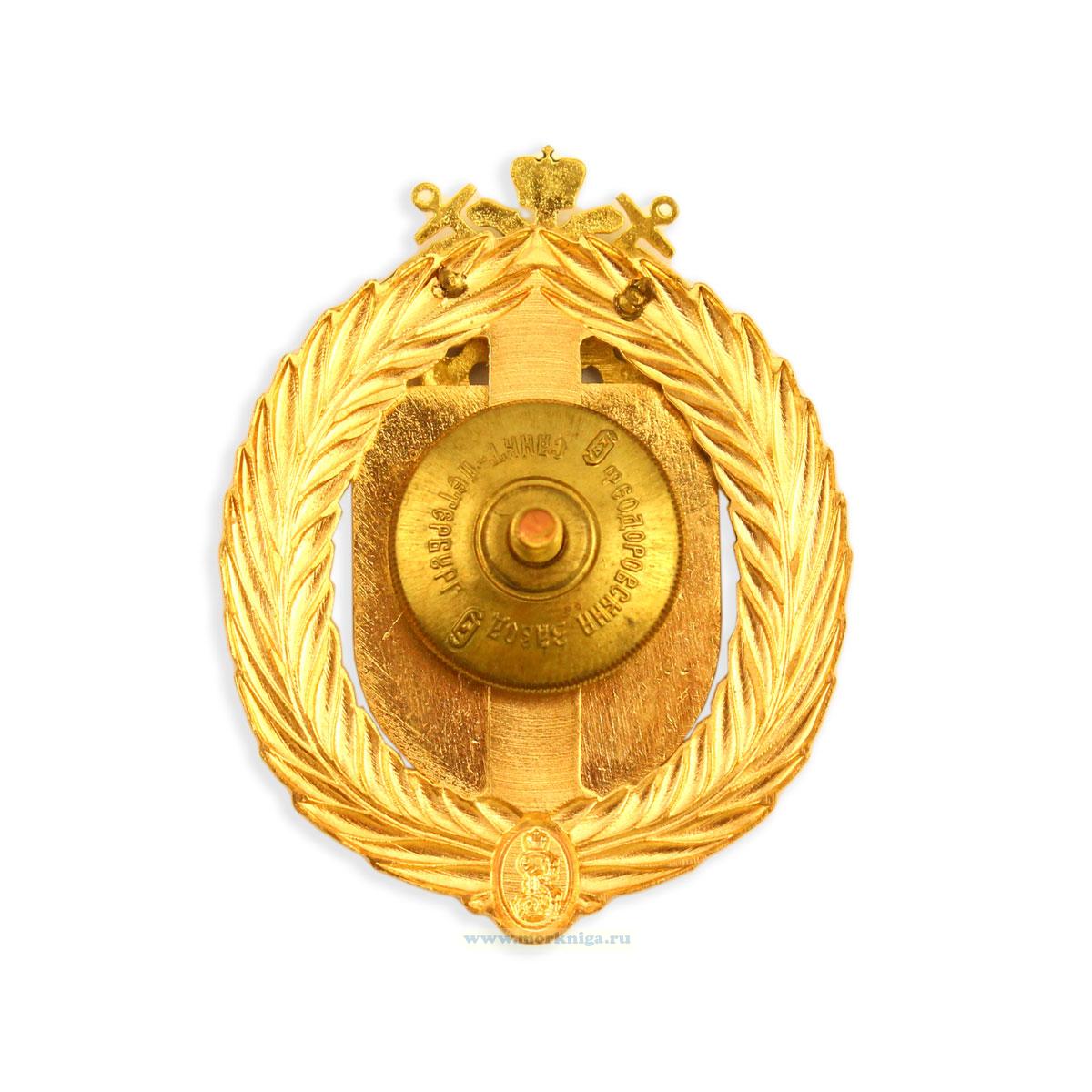 Нагрудный знак, посвященный бригаде кораблей охраны водного района Черноморского флота. В оформлении использованы лавровый венок, якорь, цепь и элементы вооружения, символизирующие защиту морских рубежей и баз флота. Знак имеет памятный характер и отражает принадлежность к силам охраны водного района ЧФ.