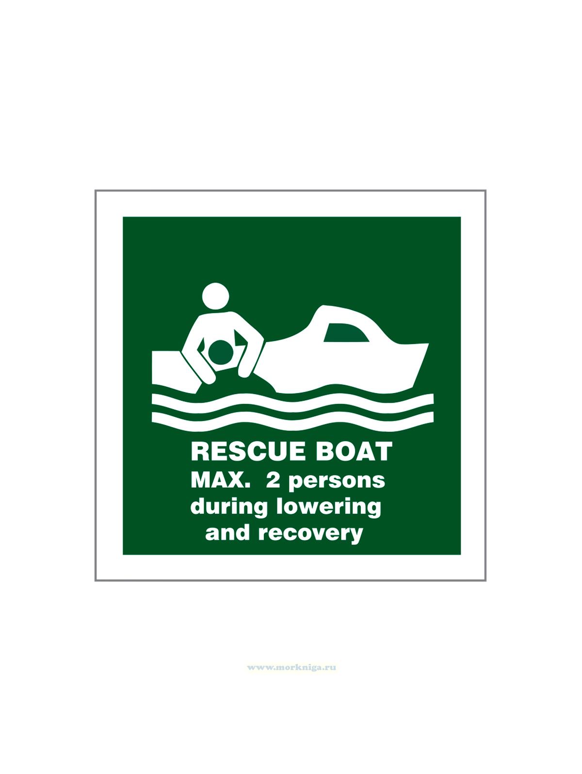 Наклейка " Rescue boat max.2 persons during lowering and recovery" обозначает специализированное спасательное судно, предназначенное для оперативного спасения людей на воде в случае аварии, пожара или чрезвычайной ситуации на судне.
