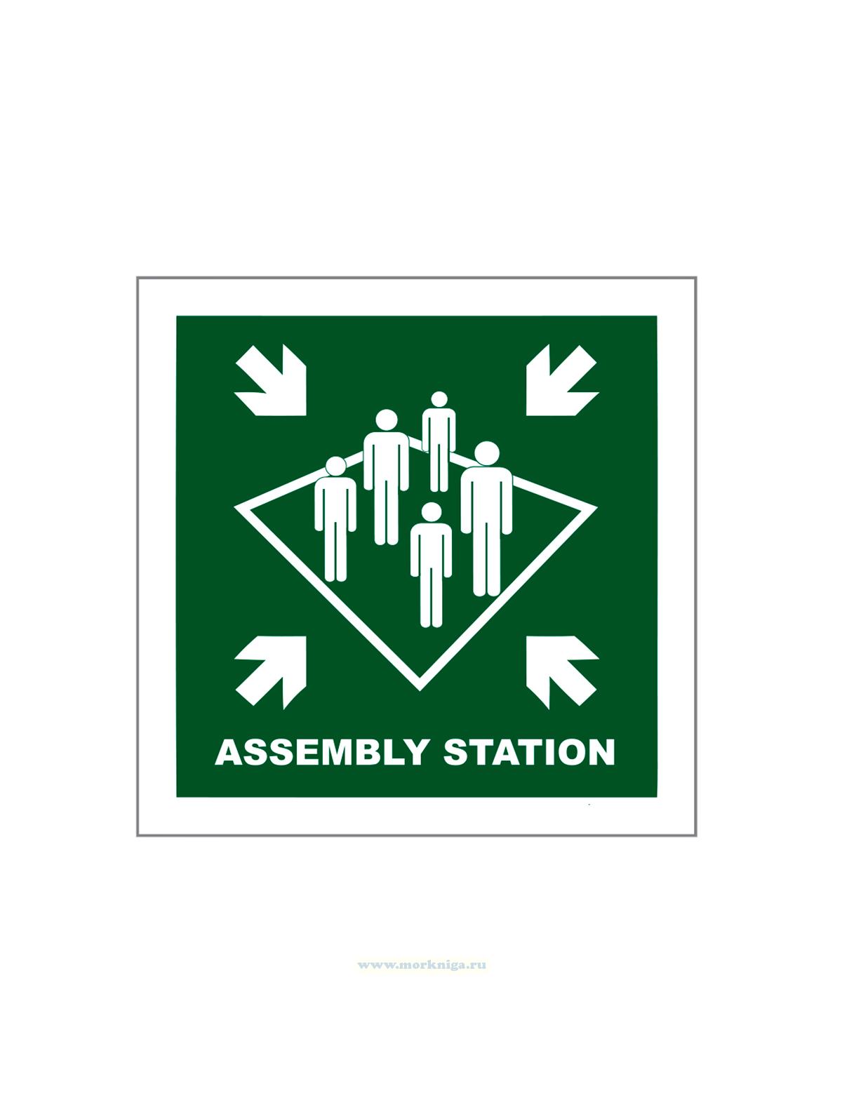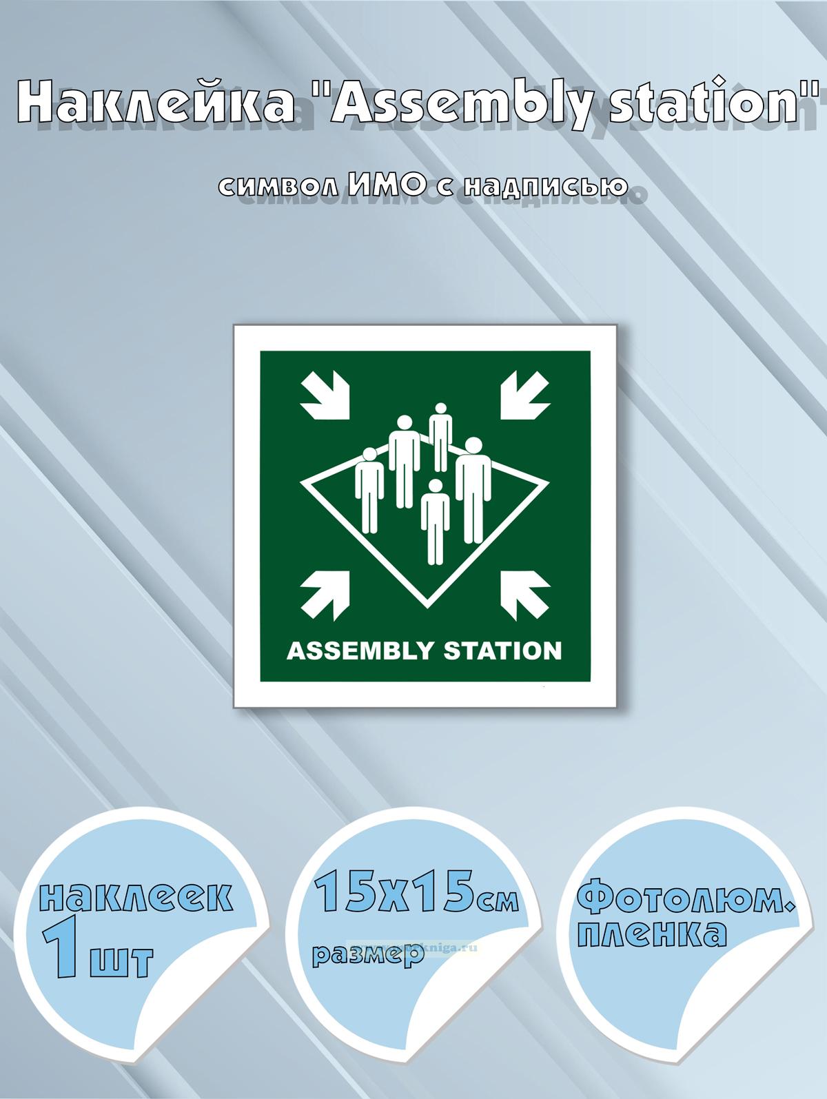 Наклейка "Assembly station" указывает место сбора пассажиров и экипажа в случае чрезвычайной ситуации на борту судна. Она предназначена для организации упорядоченного построения и проведения переклички перед эвакуацией или выполнением других аварийных процедур.