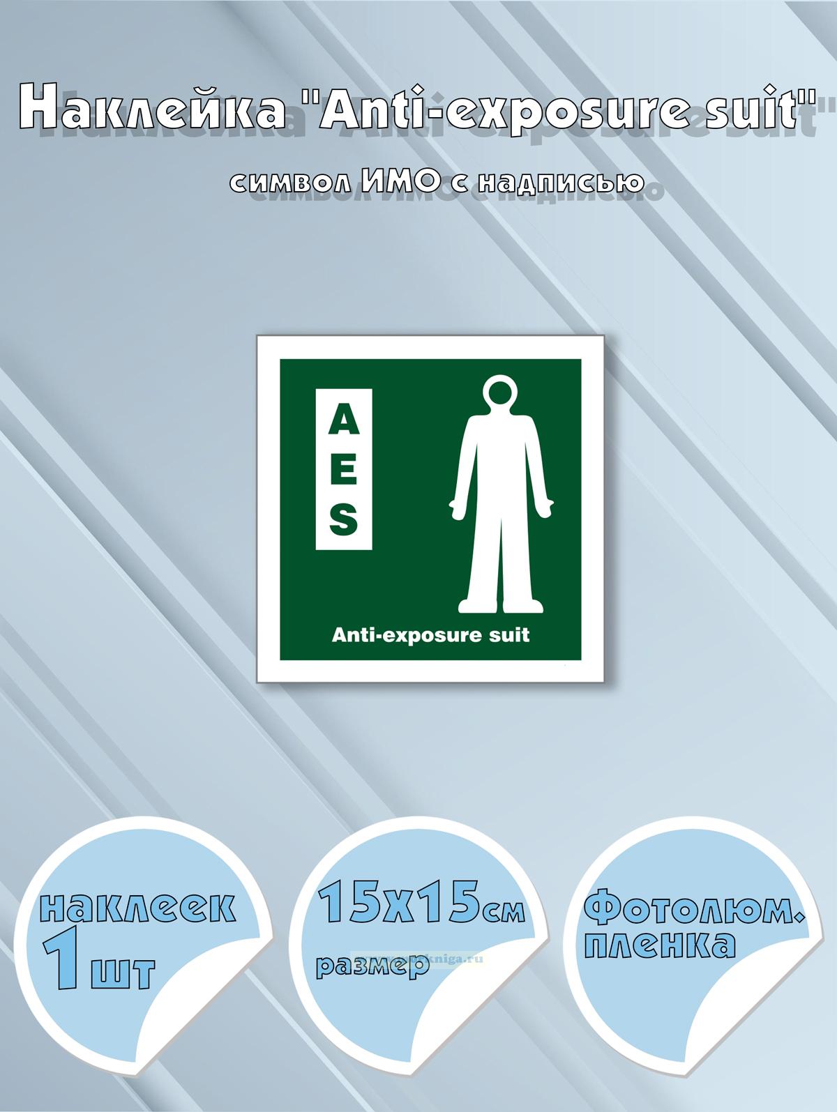 • Наклейка "Anti-exposure suit" с надписью, символ ИМО на самоклеящейся фотолюминесцентной пленке, 15х15 см