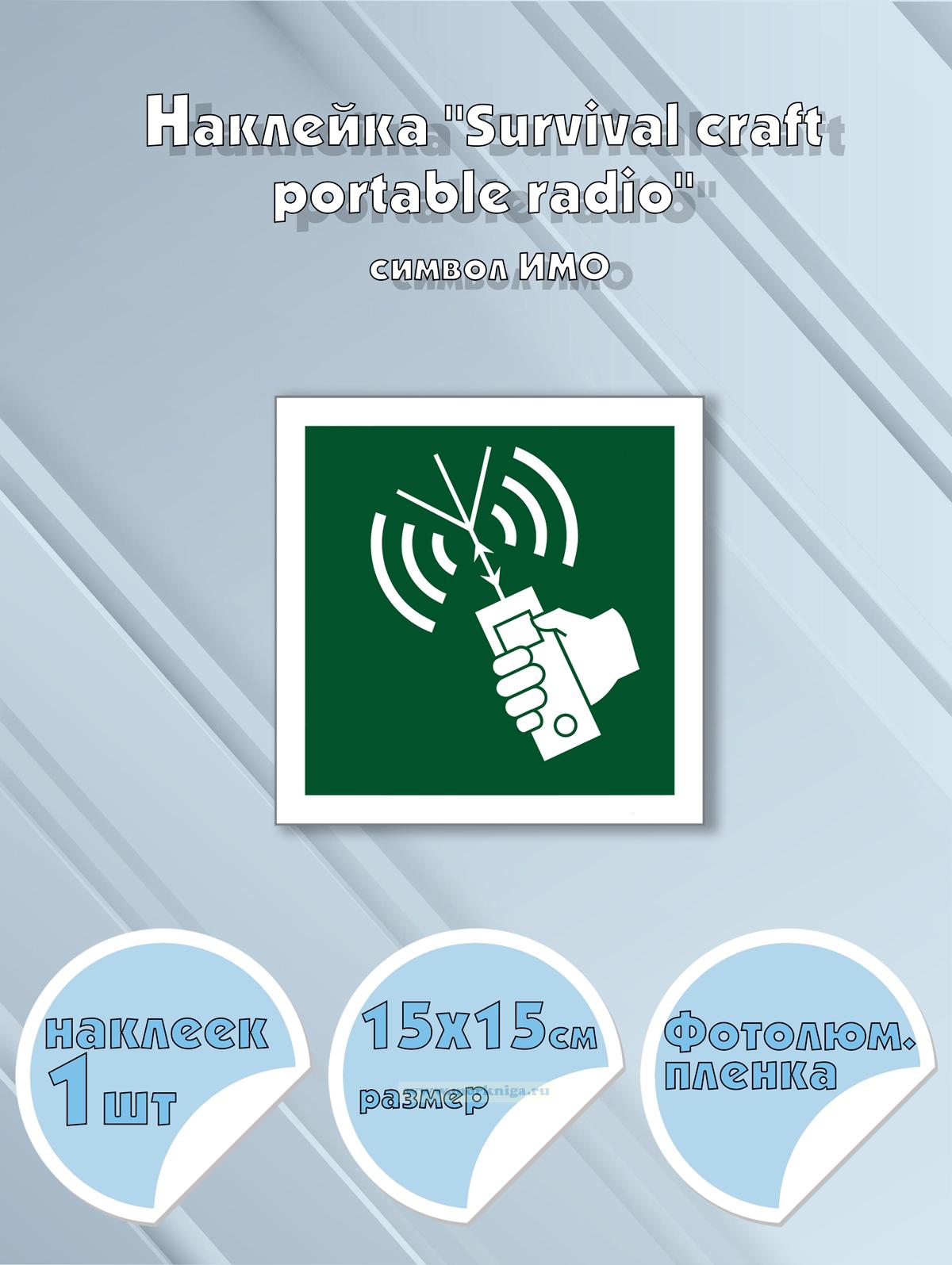 Наклейка "Survival craft portable radio" с надписью, символ ИМО на самоклеящейся фотолюминесцентной пленке, 15х15 см (230 руб.)
