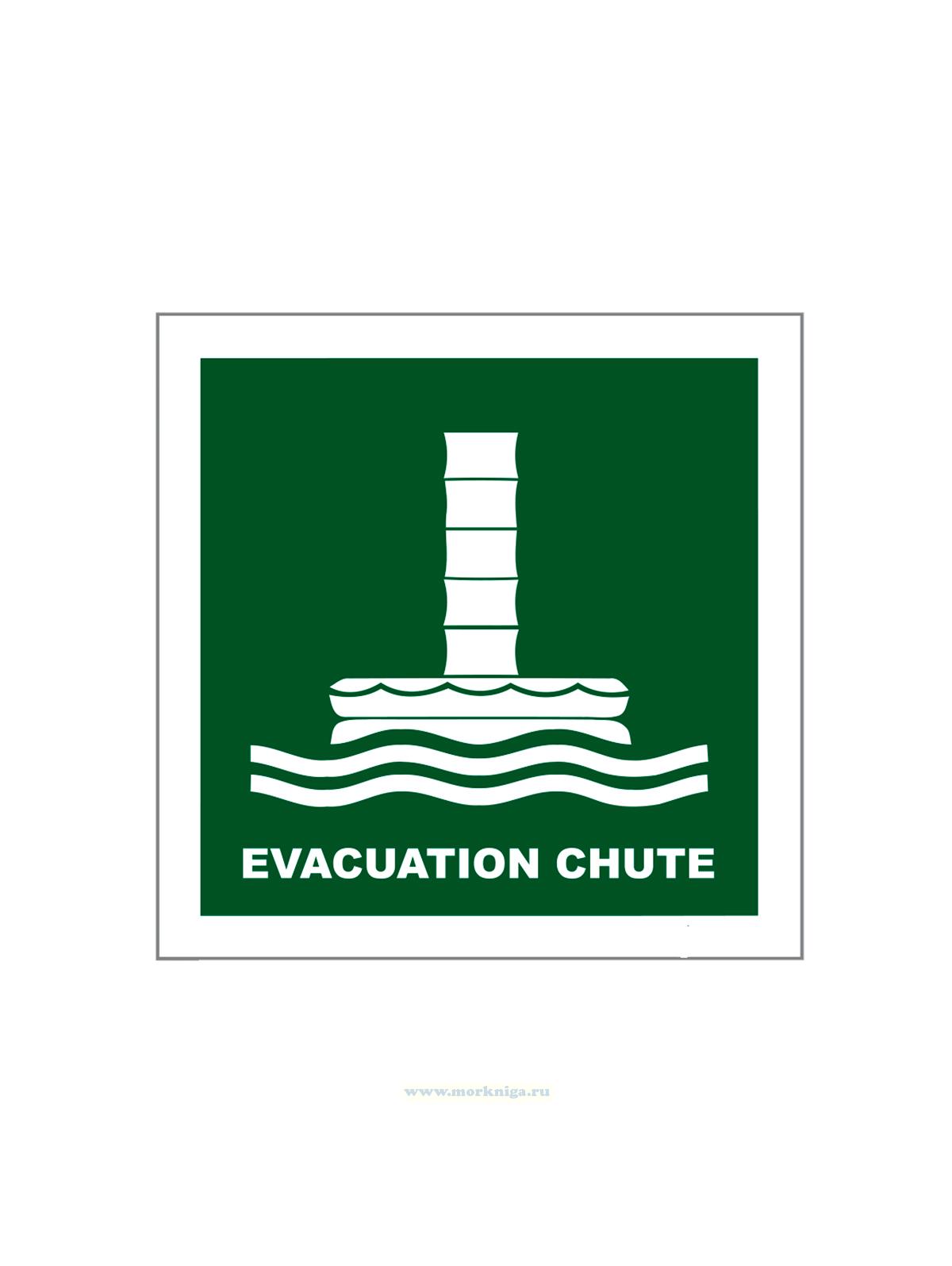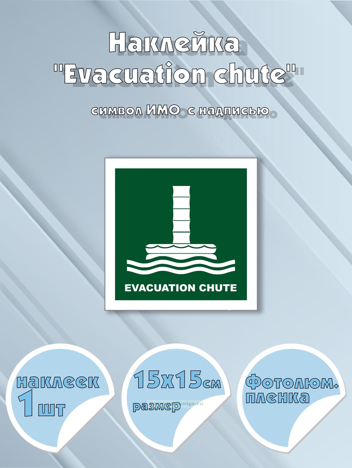 Наклейка "Evacuation chute" с надписью, символ ИМО на самоклеящейся фотолюминесцентной пленке, 15х15 см