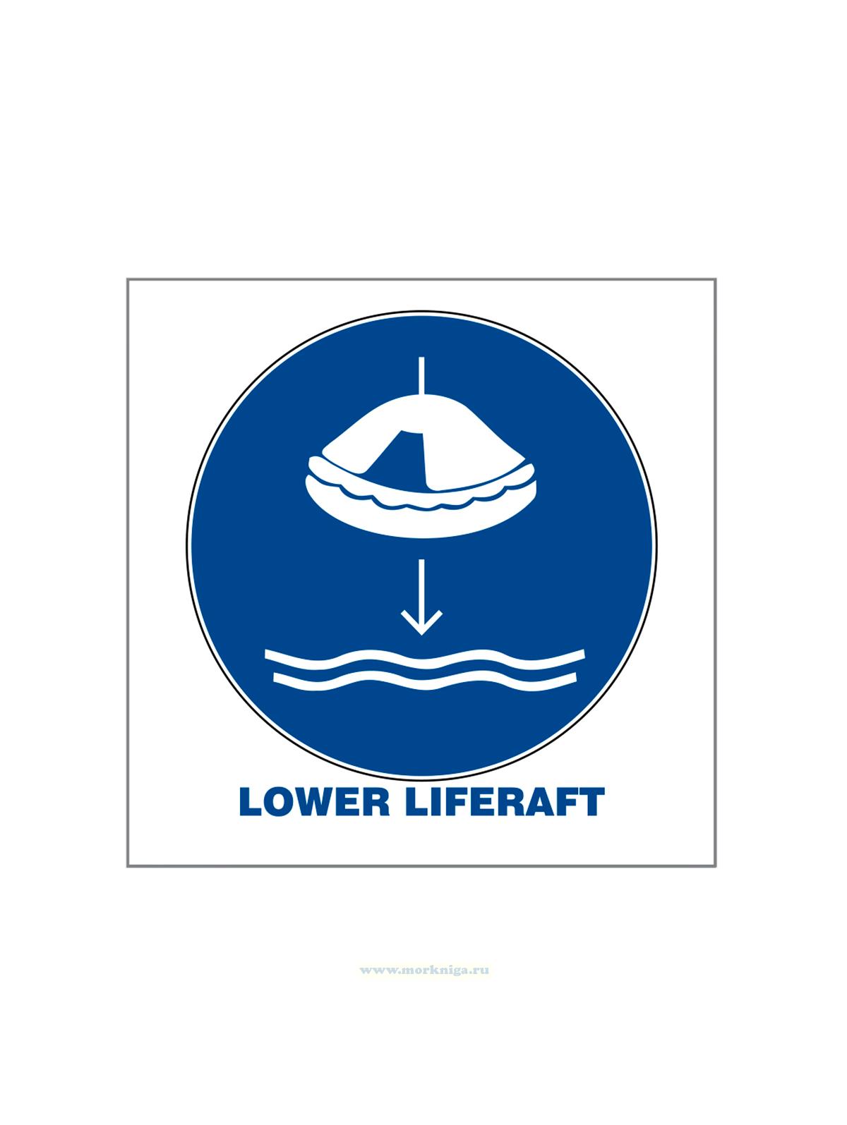 Наклейка "Lower liferaft" указывает на место размещения или точку запуска спасательного плота, предназначенного для быстрой эвакуации людей с судна в аварийной ситуации. Она обозначает критическую процедуру по освобождению и развертыванию надувного плота, обеспечивающего плавучесть и выживание до прибытия спасательных сил.