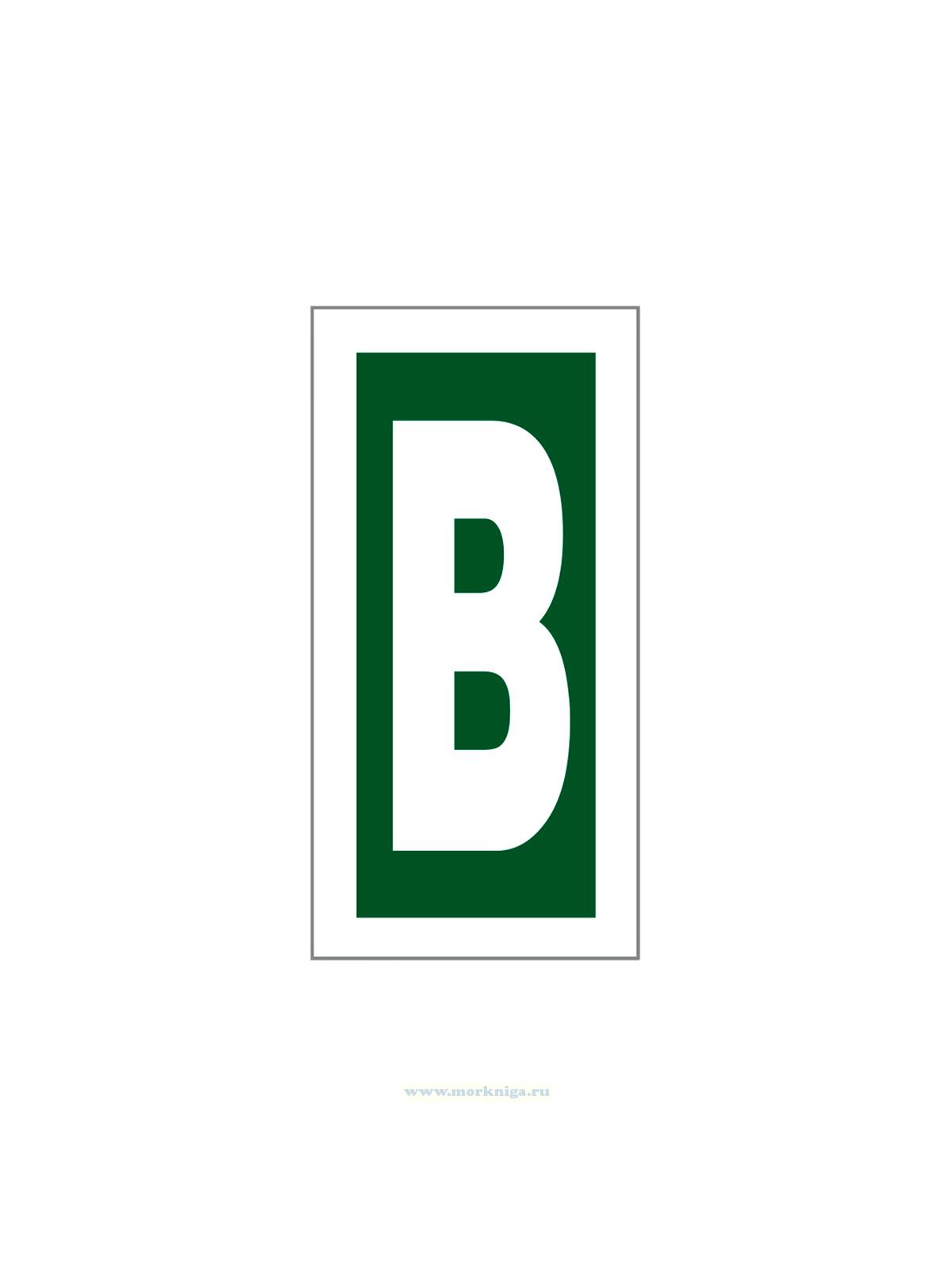 Наклейка предназначена для обозначения буквы "B" на судовых документах или оборудовании, что упрощает идентификацию. Она используется для быстрого визуального распознавания и ориентации в морской навигации и безопасности.