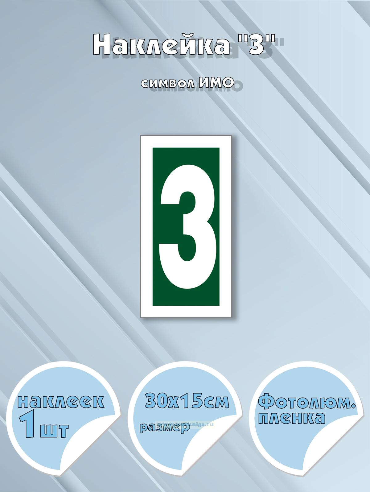 Наклейка "3", символ ИМО на самоклеящейся фотолюминесцентной пленке, 15х7,5 см (115 руб.)