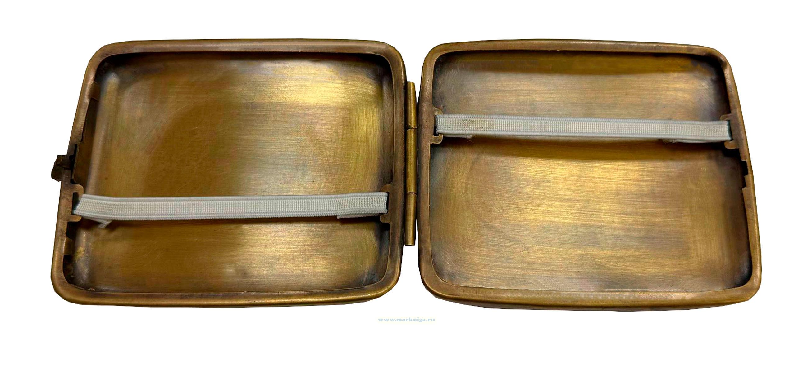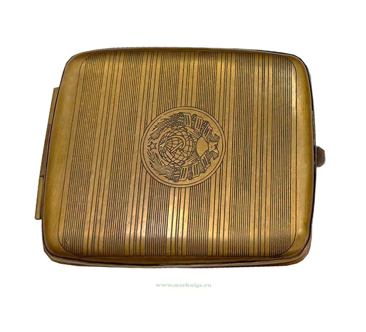 Стильный металлический портсигар с гербом СССР - аксессуар с характером эпохи. Золотистый корпус с продольной гравировкой и рельефным гербом в центре подчёркивает винтажный стиль и придаёт изделию солидность.