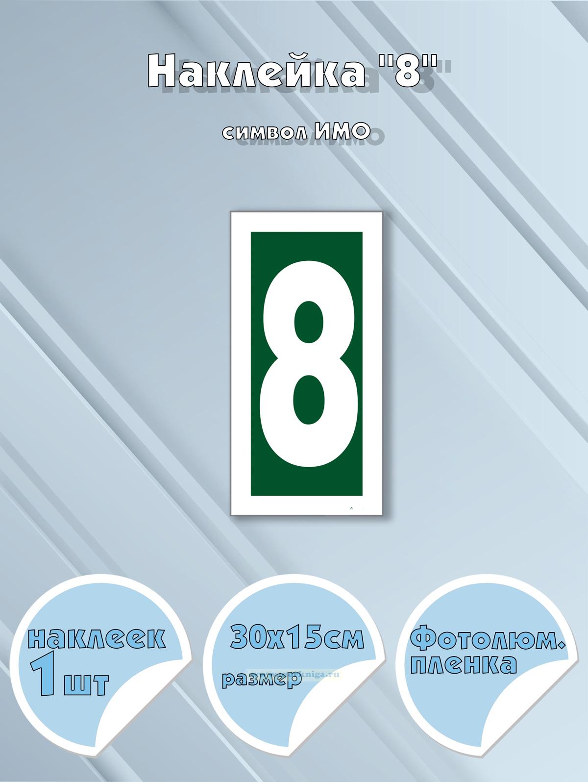 Наклейка "8", символ ИМО на самоклеящейся фотолюминесцентной пленке, 30х15 см