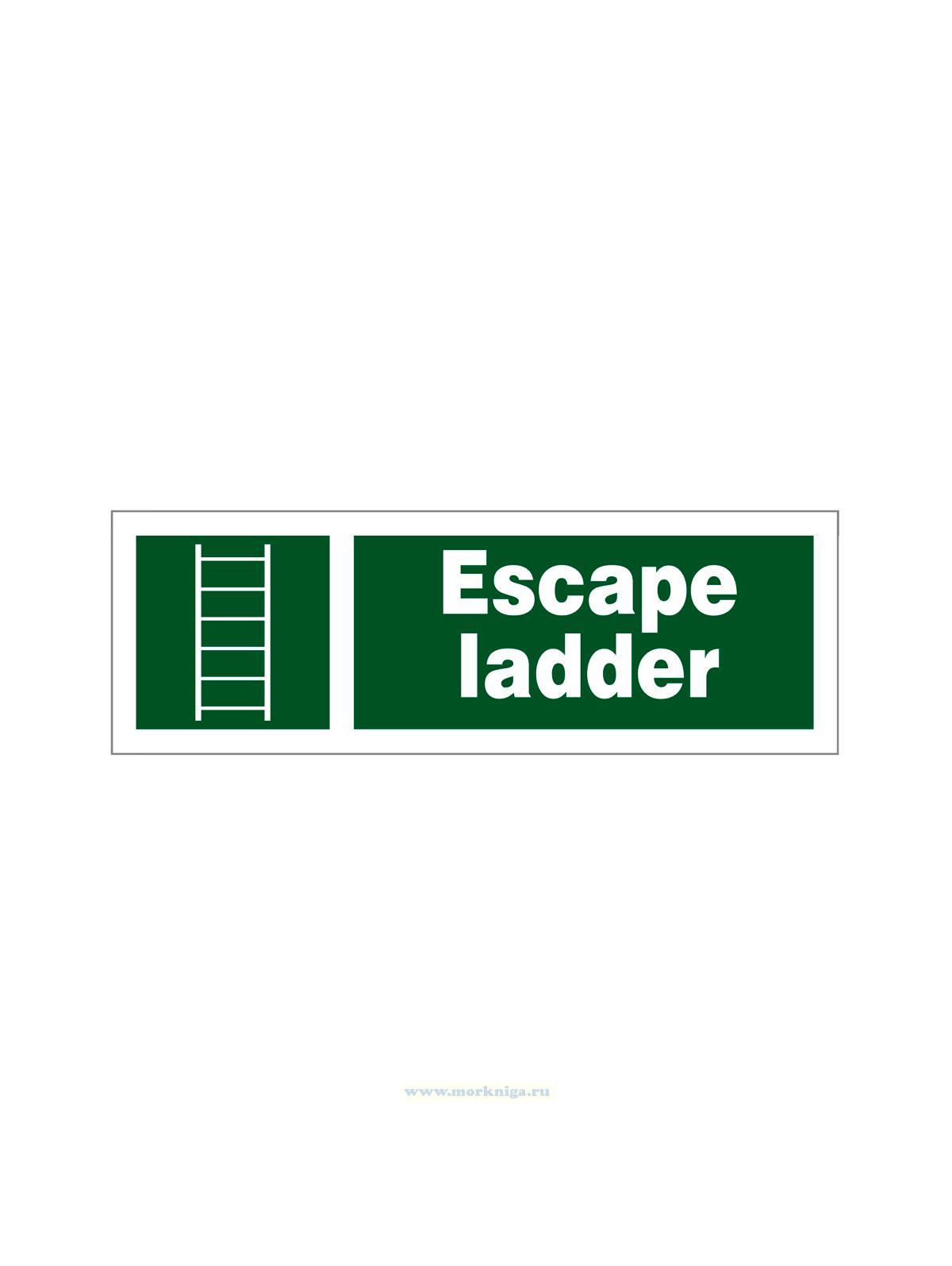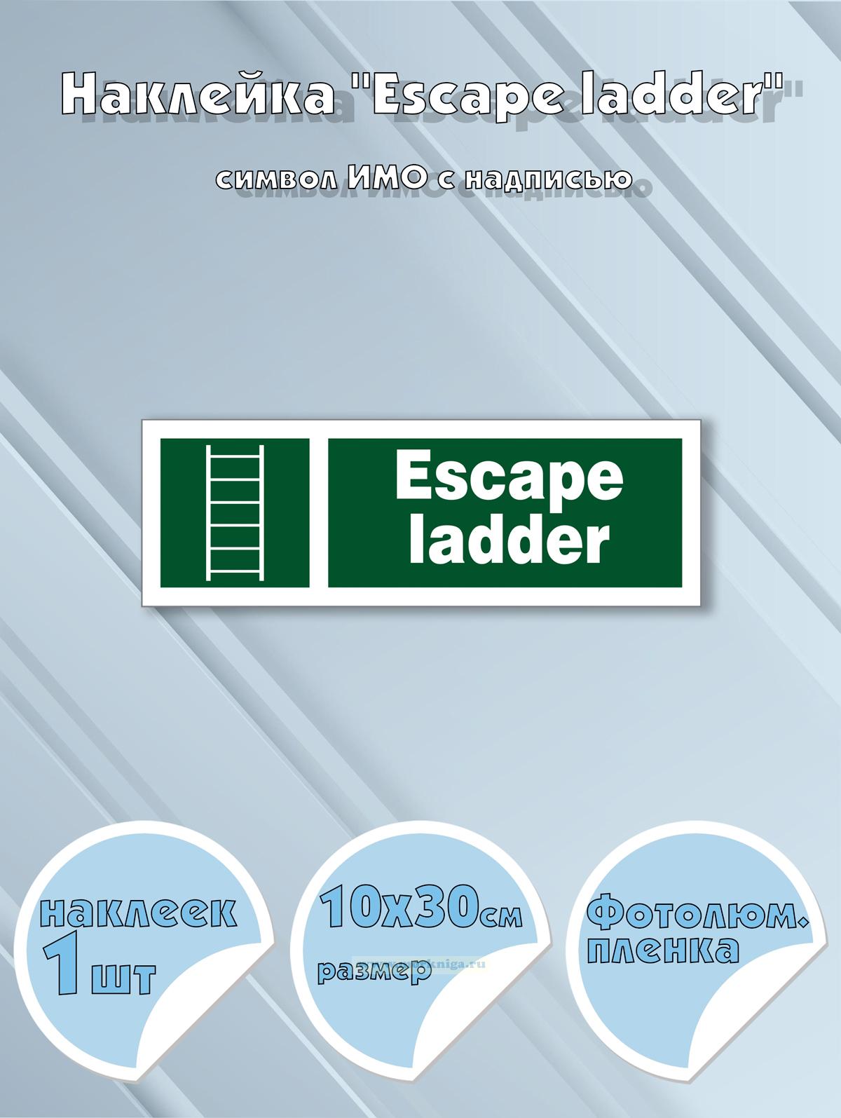Наклейка "Escape ladder" указывает на расположение аварийной лестницы, предназначенной для быстрого и безопасного эвакуирования людей в чрезвычайной ситуации. Она облегчает поиск и использование средства спасения при пожаре или других опасностях.