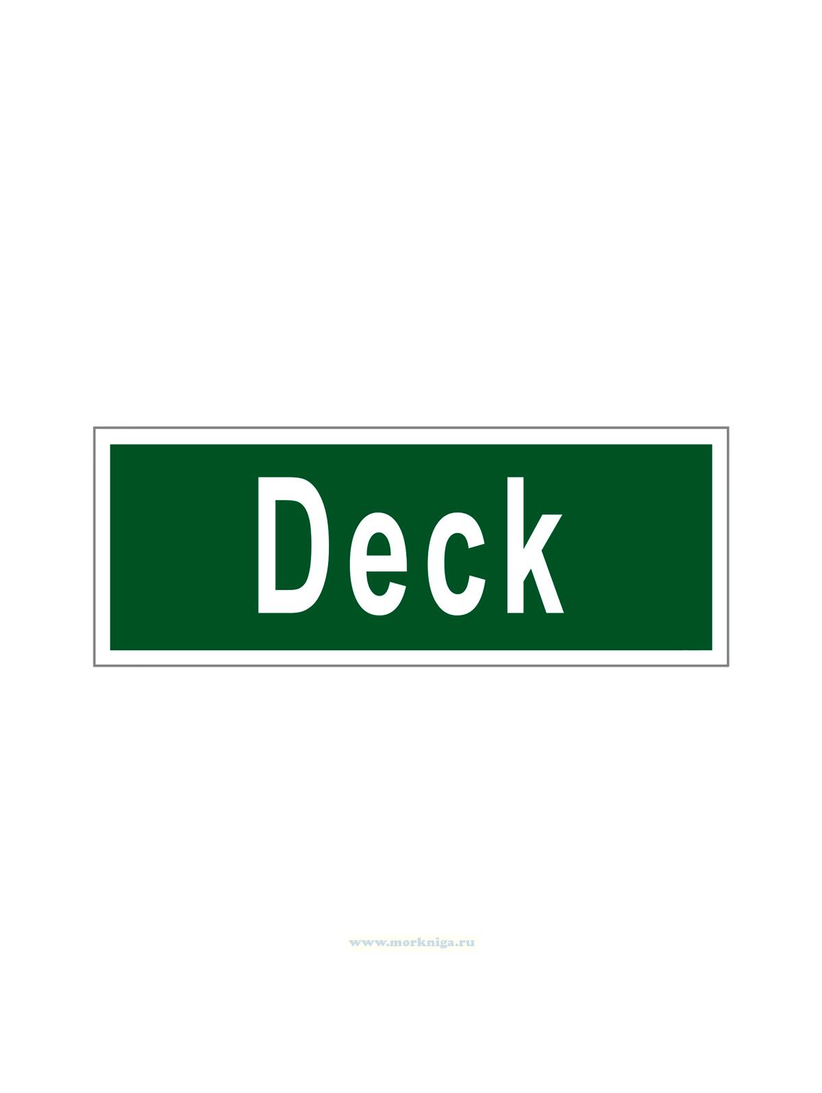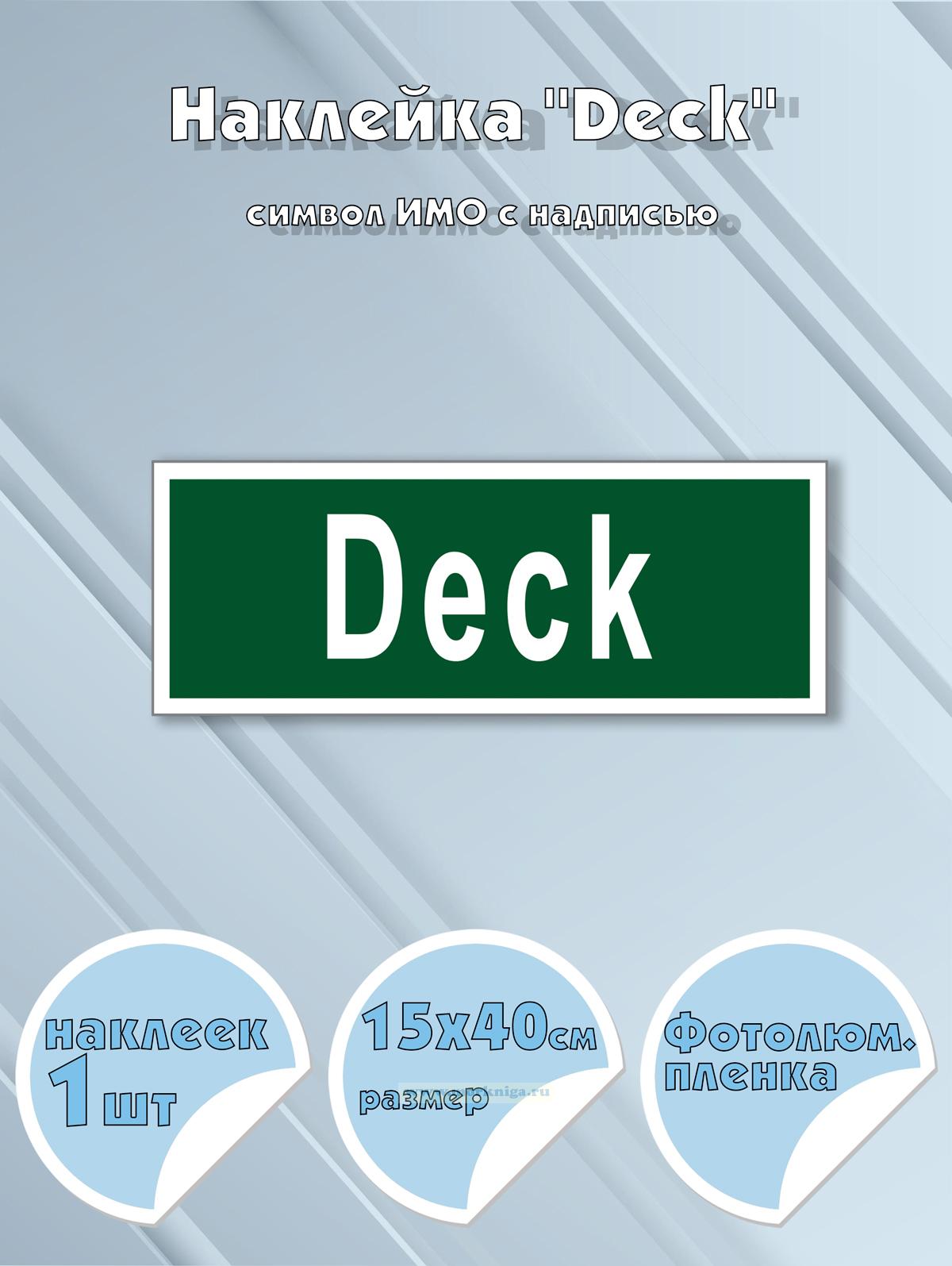 Наклейка "Deck" обозначает палубу или уровень на судне, платформе или промышленном объекте. Она помогает ориентироваться , указывая место или зону для упрощения перемещения и коммуникации.