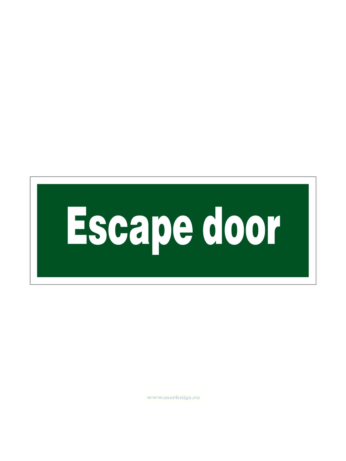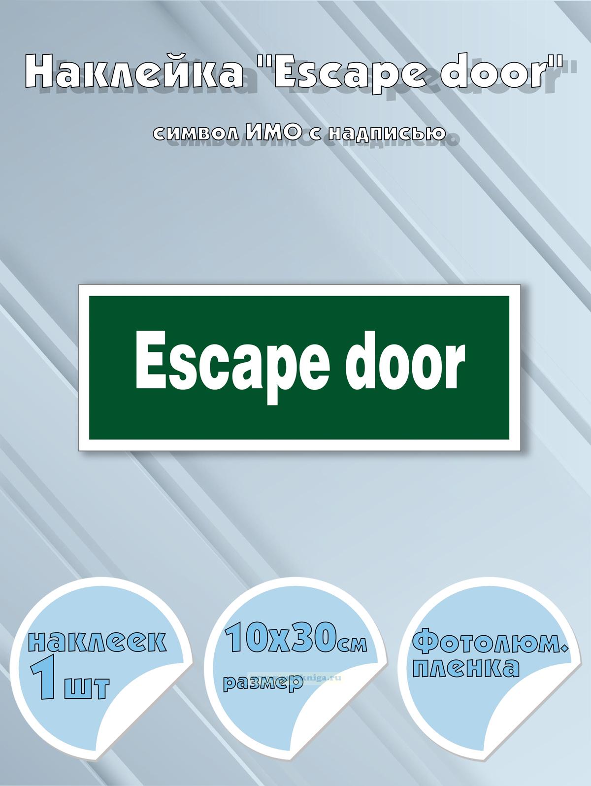 Наклейка "Escape door" обозначает аварийную дверь, предназначенную исключительно для быстрой эвакуации персонала и пассажиров в случае чрезвычайной ситуации — пожара, затопления или угрозы жизни.